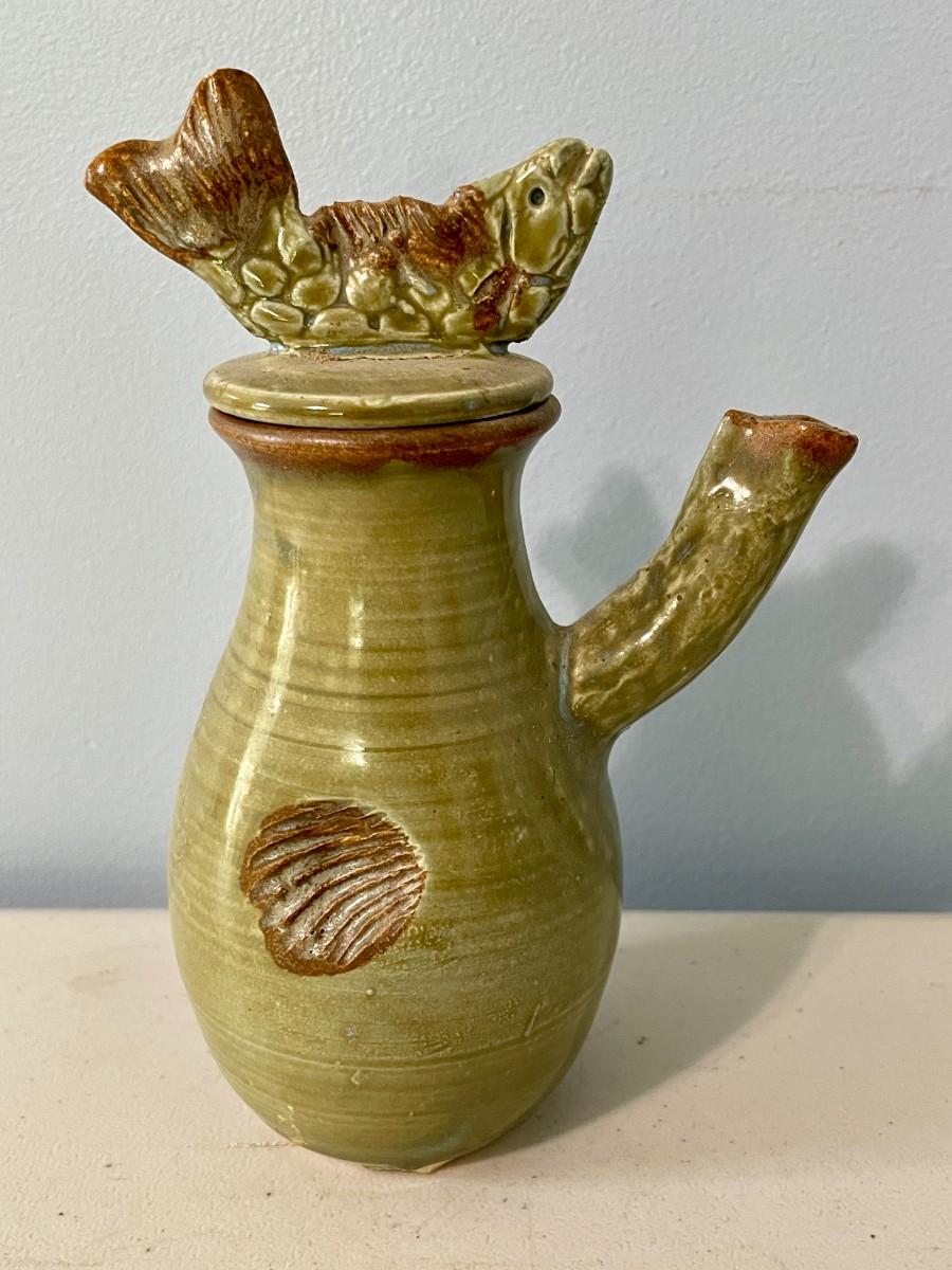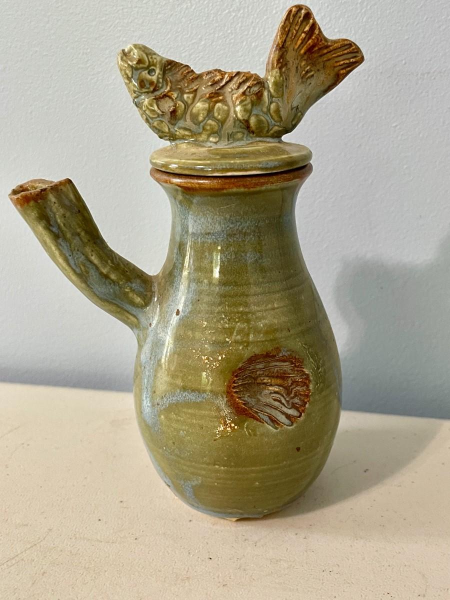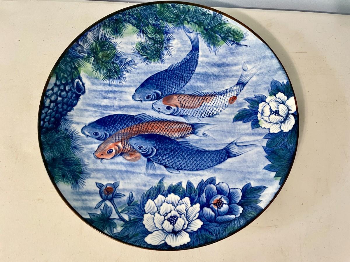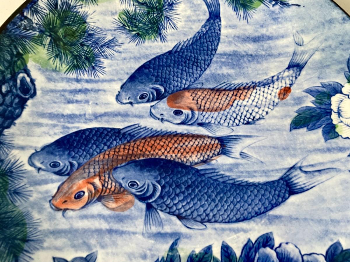 Includes koi platter, set of 4 fish rice bowls, pottery tea/saki pot, ceramic pagoda.