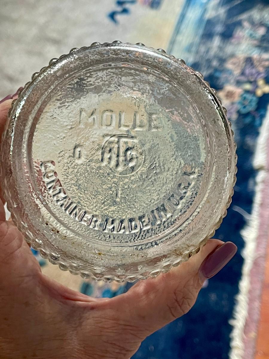 Includes 5 tobacco wedge-shaped tins + two hobnail Molle shaving cream jars.