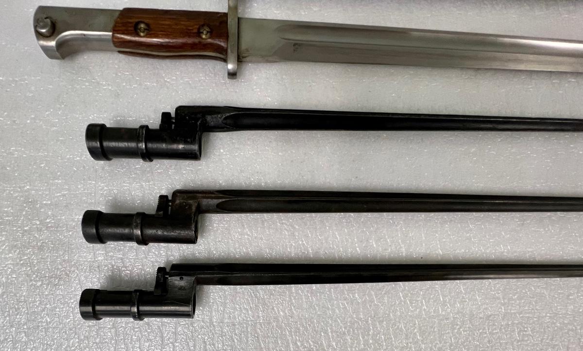 Various countries of origin. Total of 5 pieces. Two have scabbards. Longest blade is 17". SOLD AS IS.