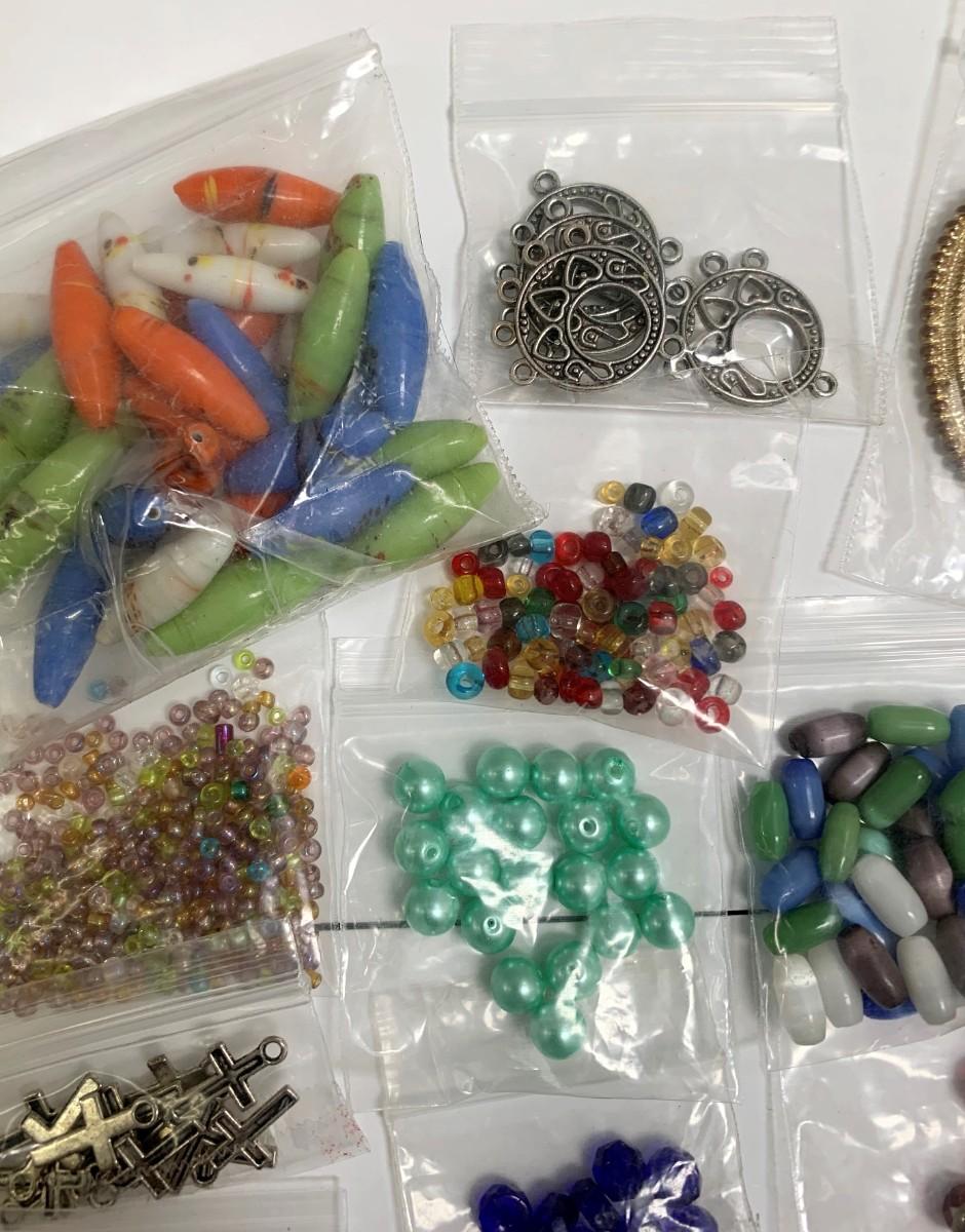 This lot contains cat eye, glass, metal, natural pearl, cobalt blue, and crystal beads. Approximately 1300 beads
