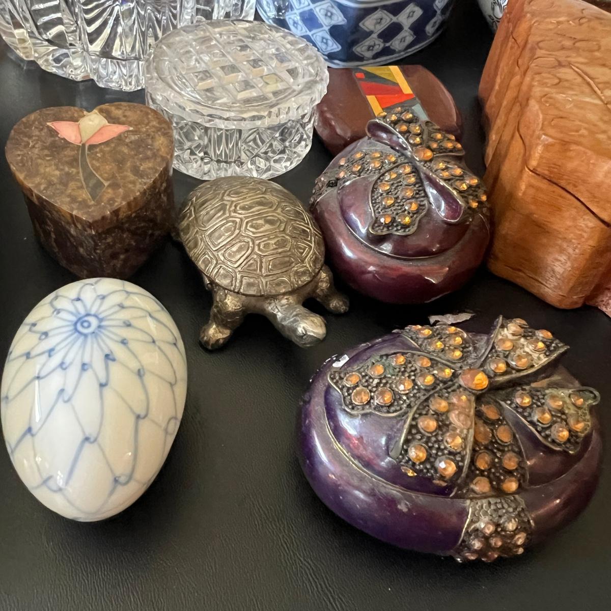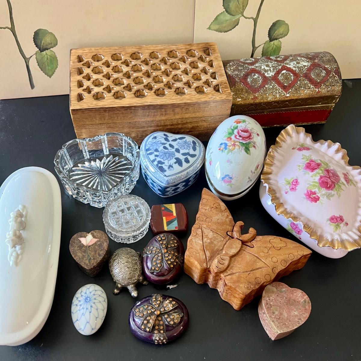 Mixed Trinket Box Collection - Wood, Glass, Ceramic, Stone