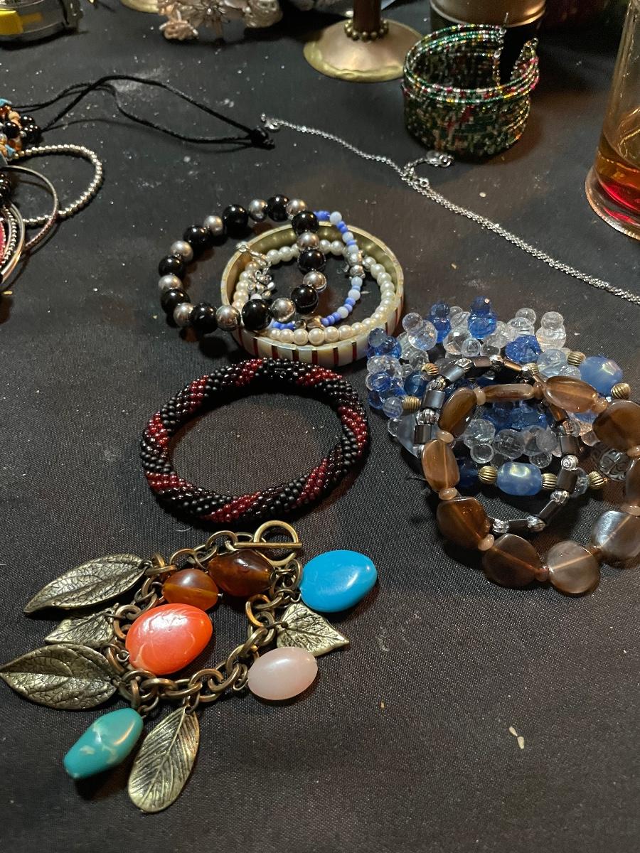 Mixed lot with 11 bracelets. Either in like new condition or new. Metals and stones have not been tested