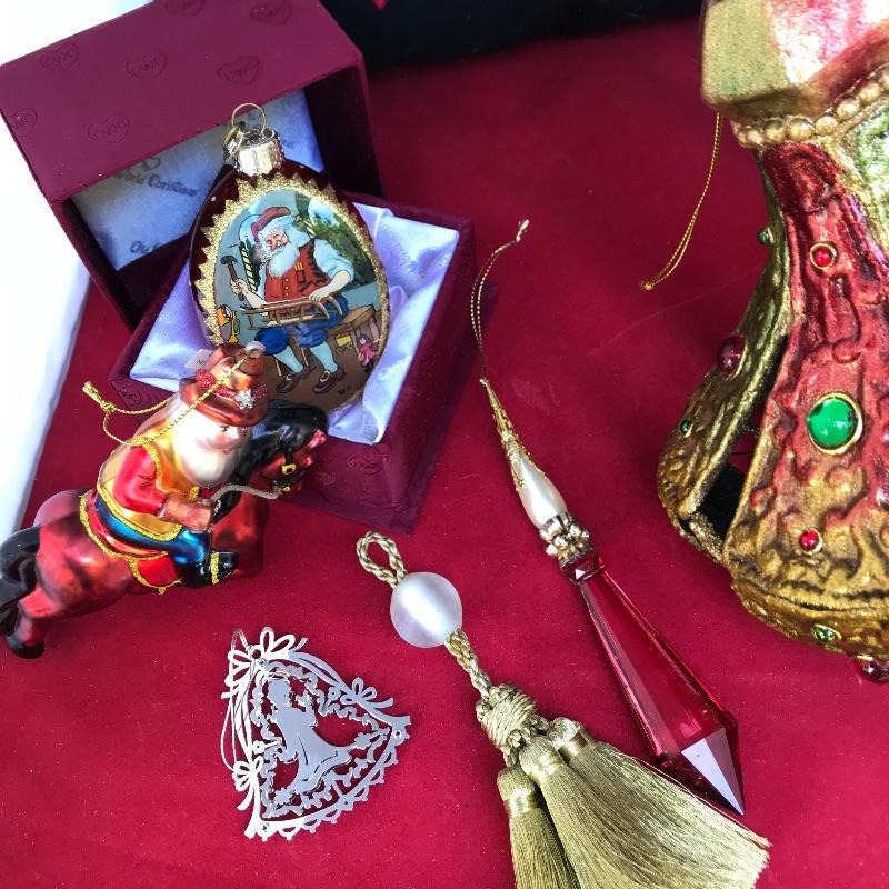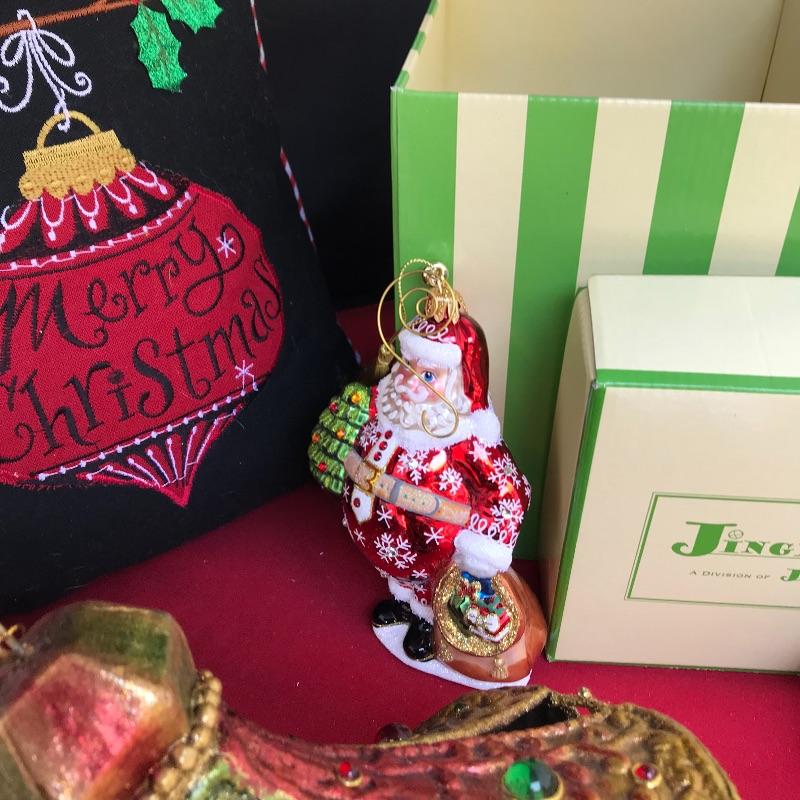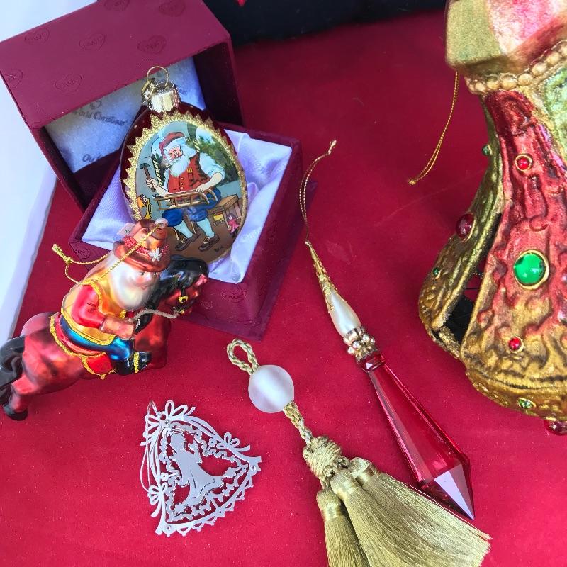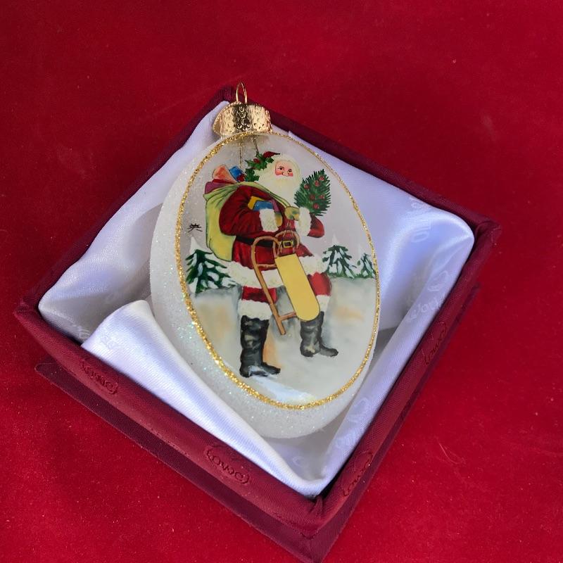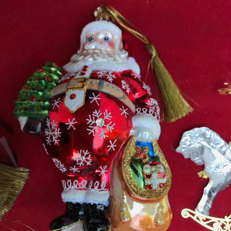 Glass Santa on horse ornament