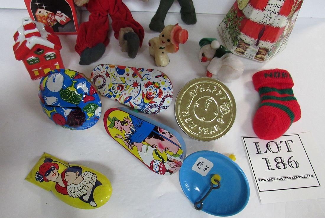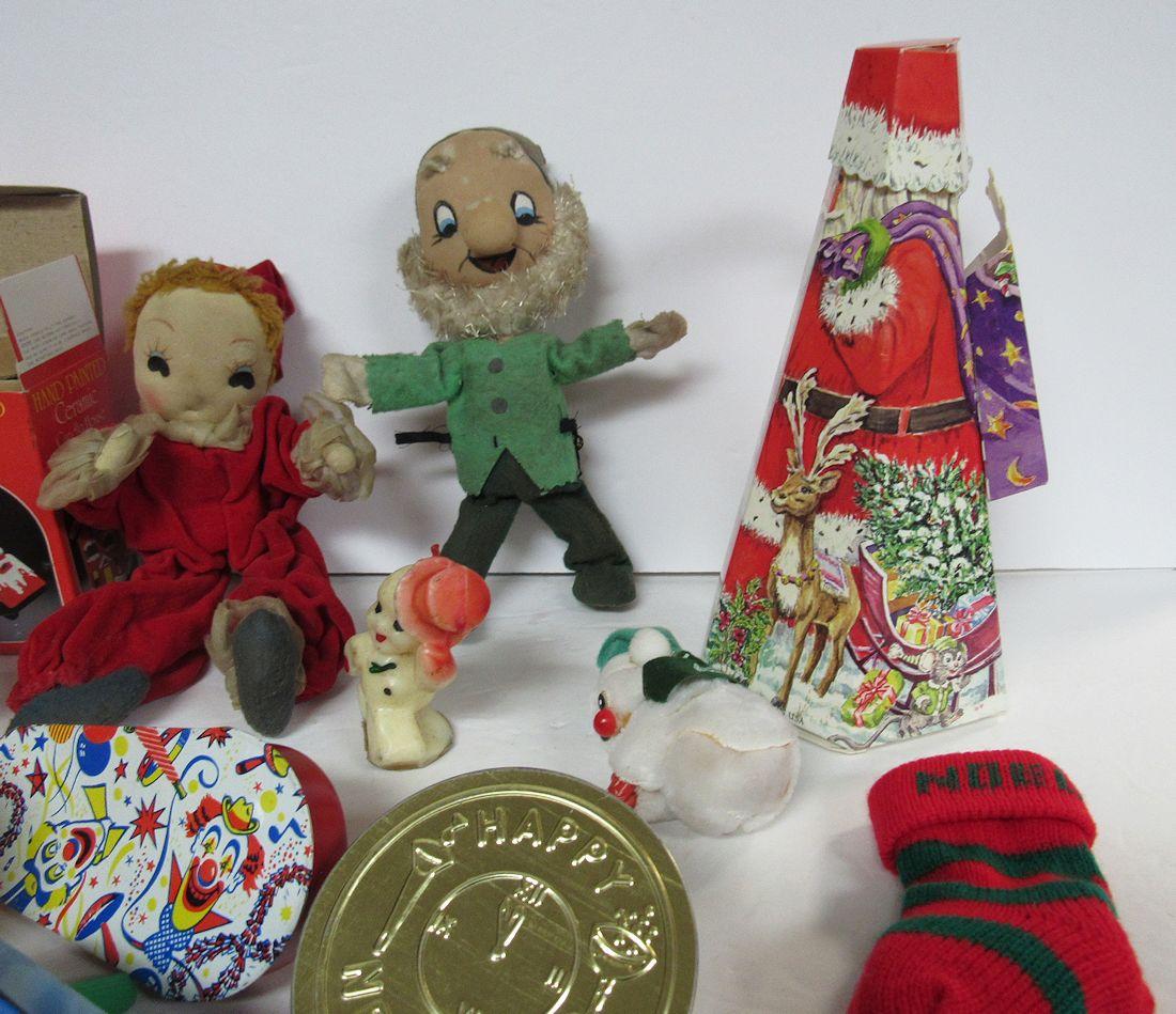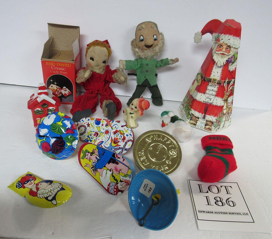 Mixed Christmas Lot Scented Candle, Dolls, Santa Candy Box, Noisemakers