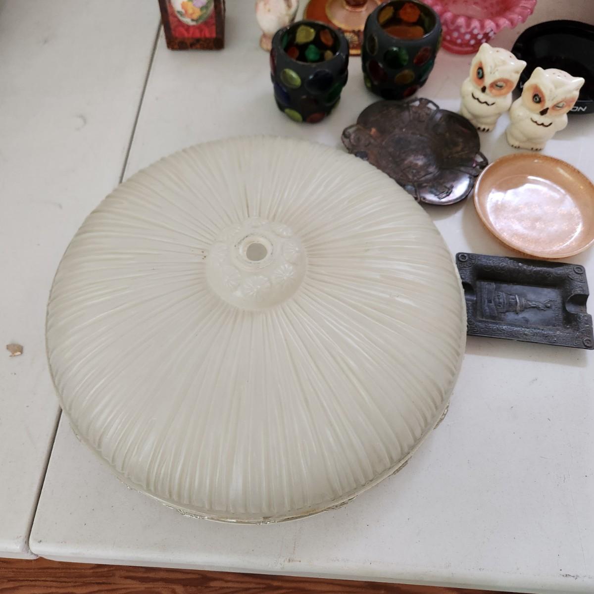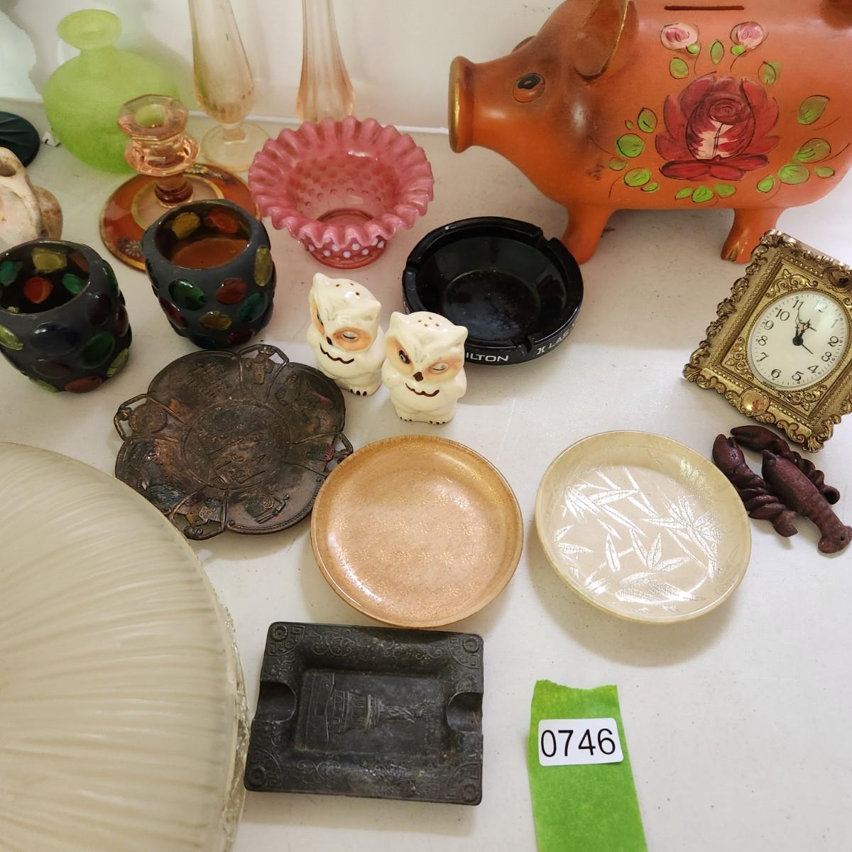 Mixed Collectable Lot Lamp Shade Piggy Bank Clock Glassware Las Vegas Fairies