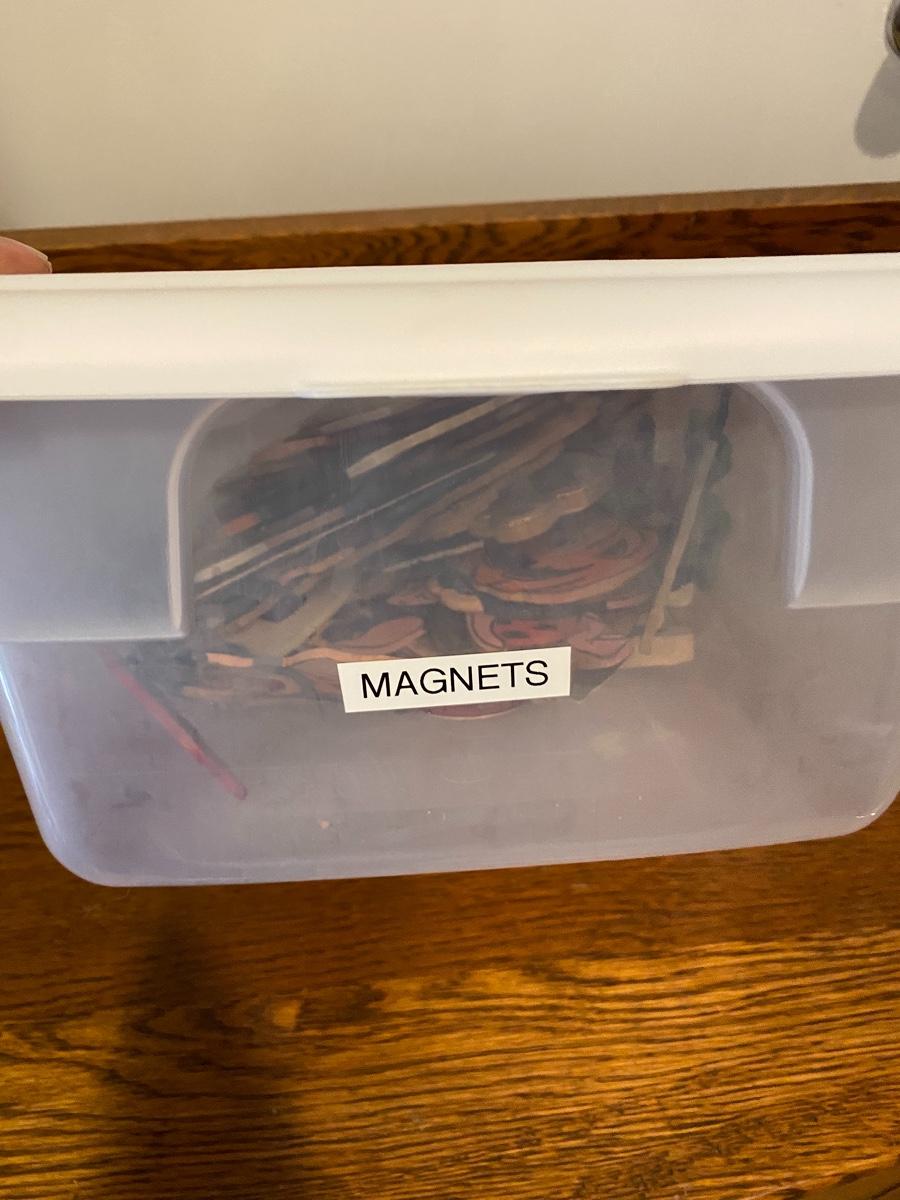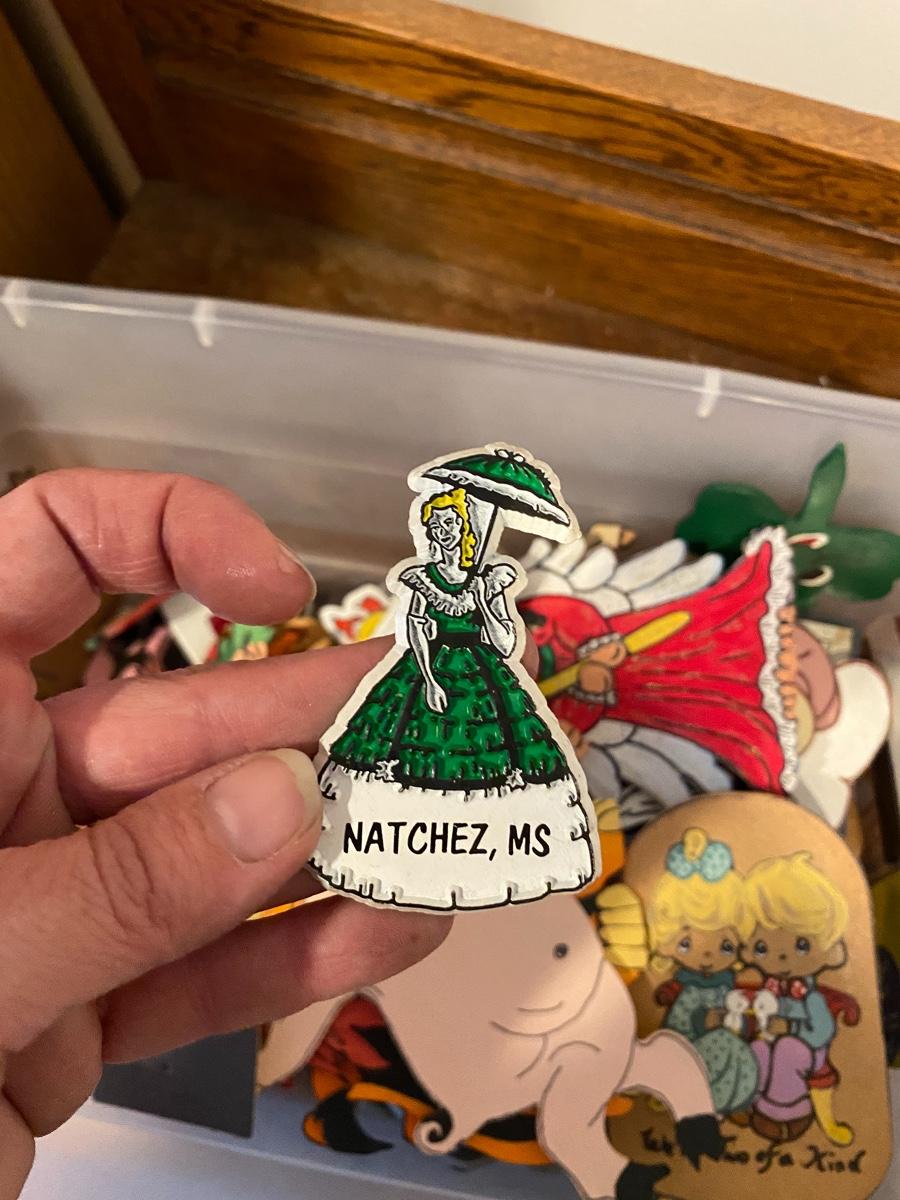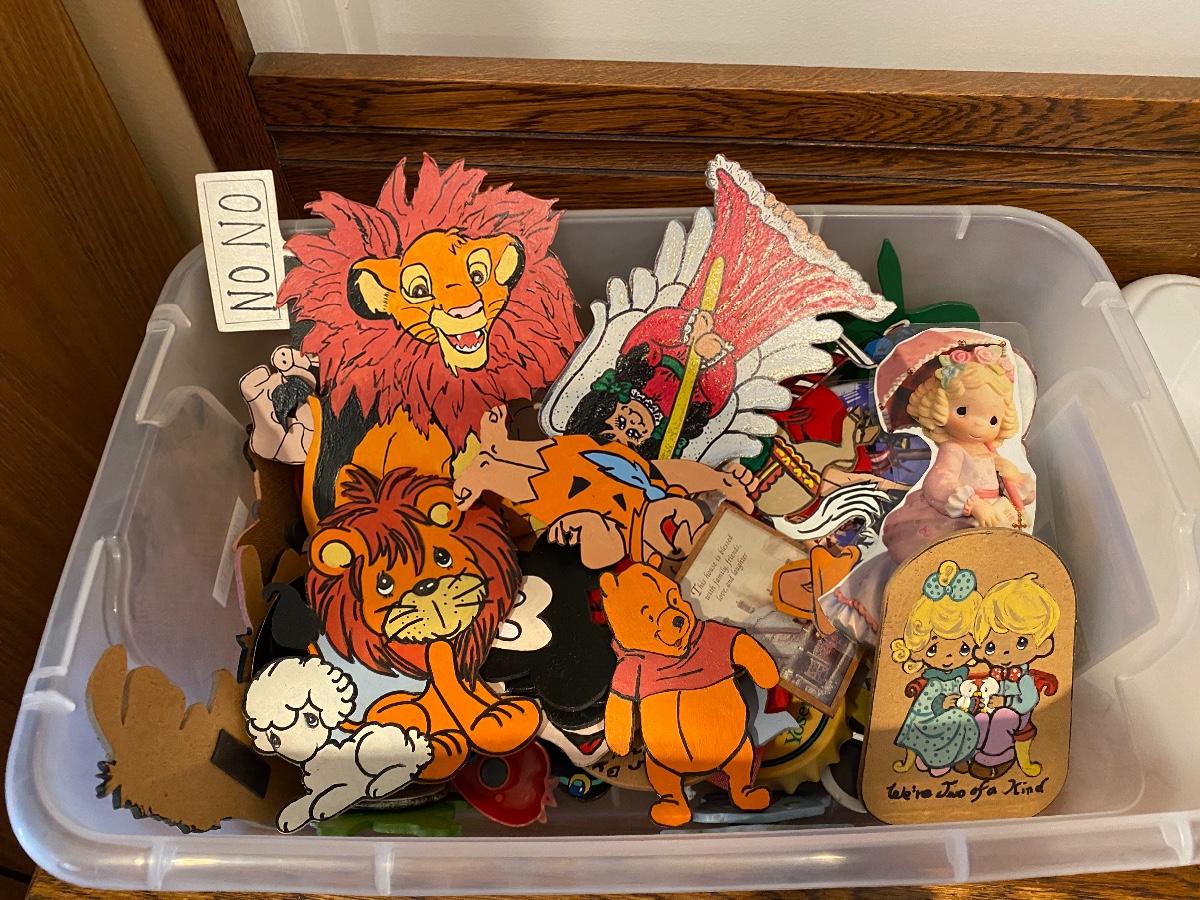 Mixed collection of magnets. Some are vintage souvenirs other are homemade wood and laminated cut outs. Come in box.