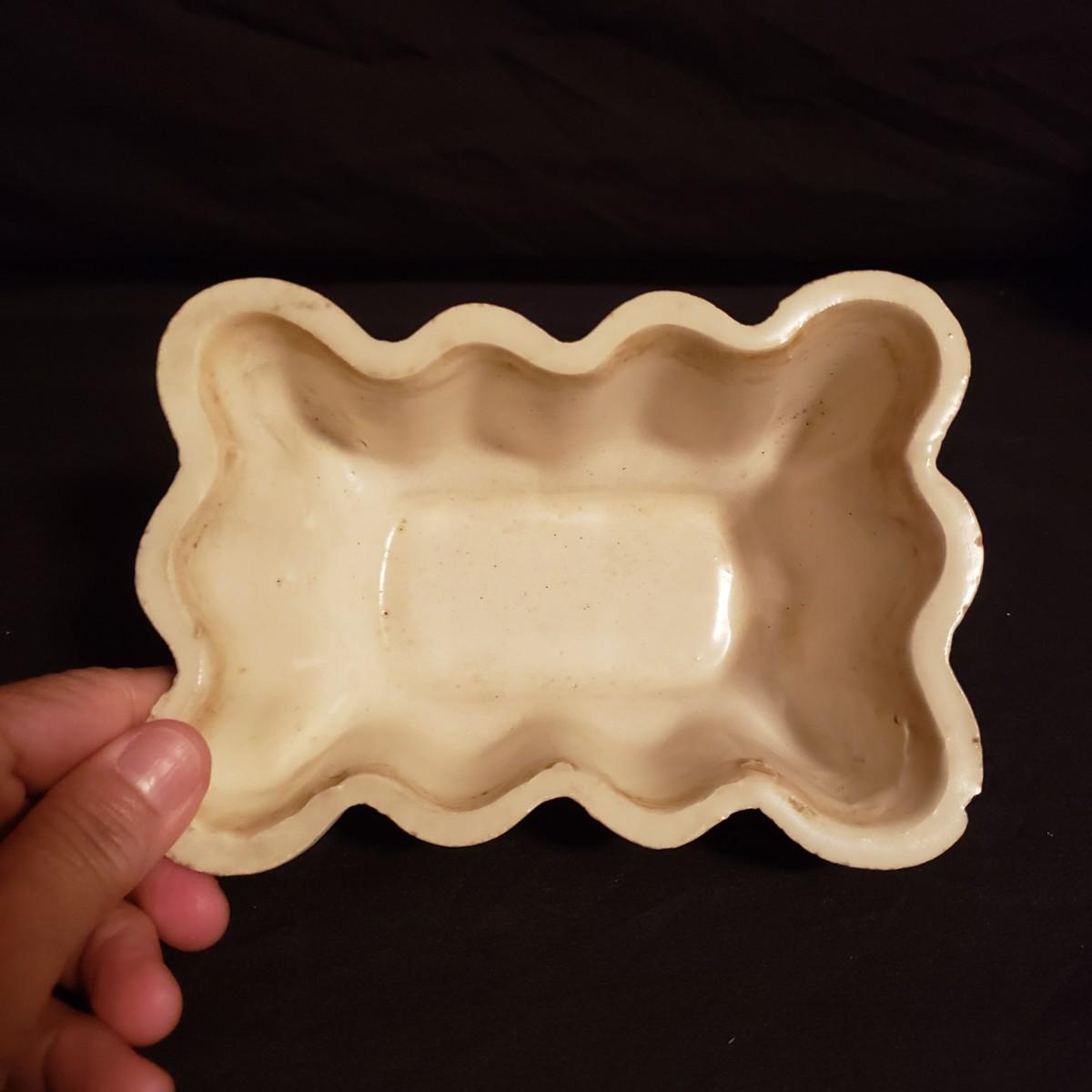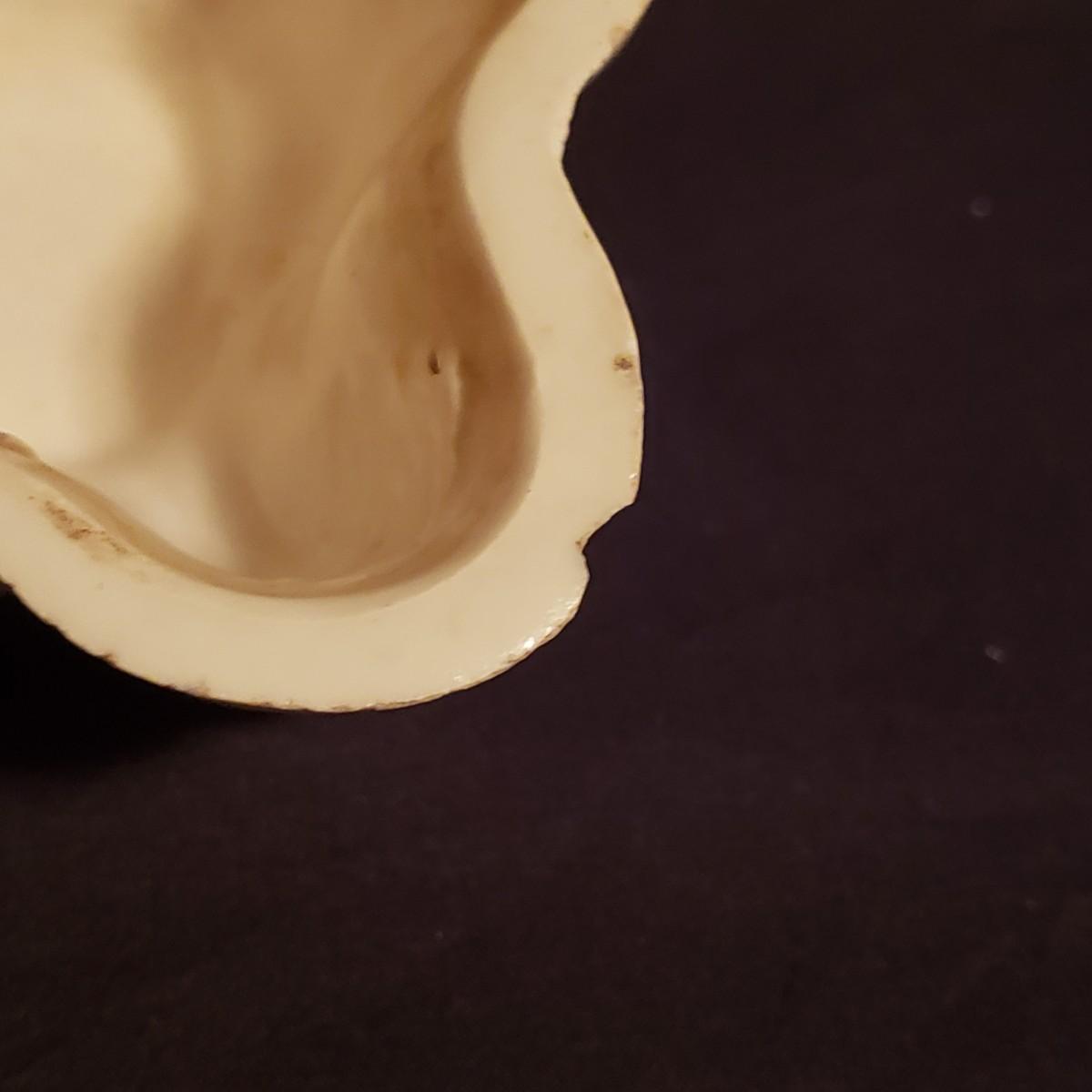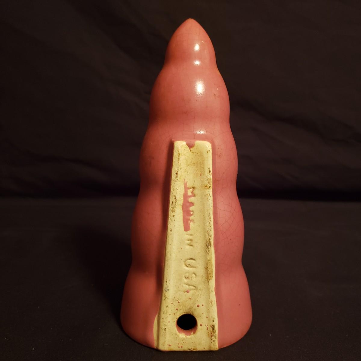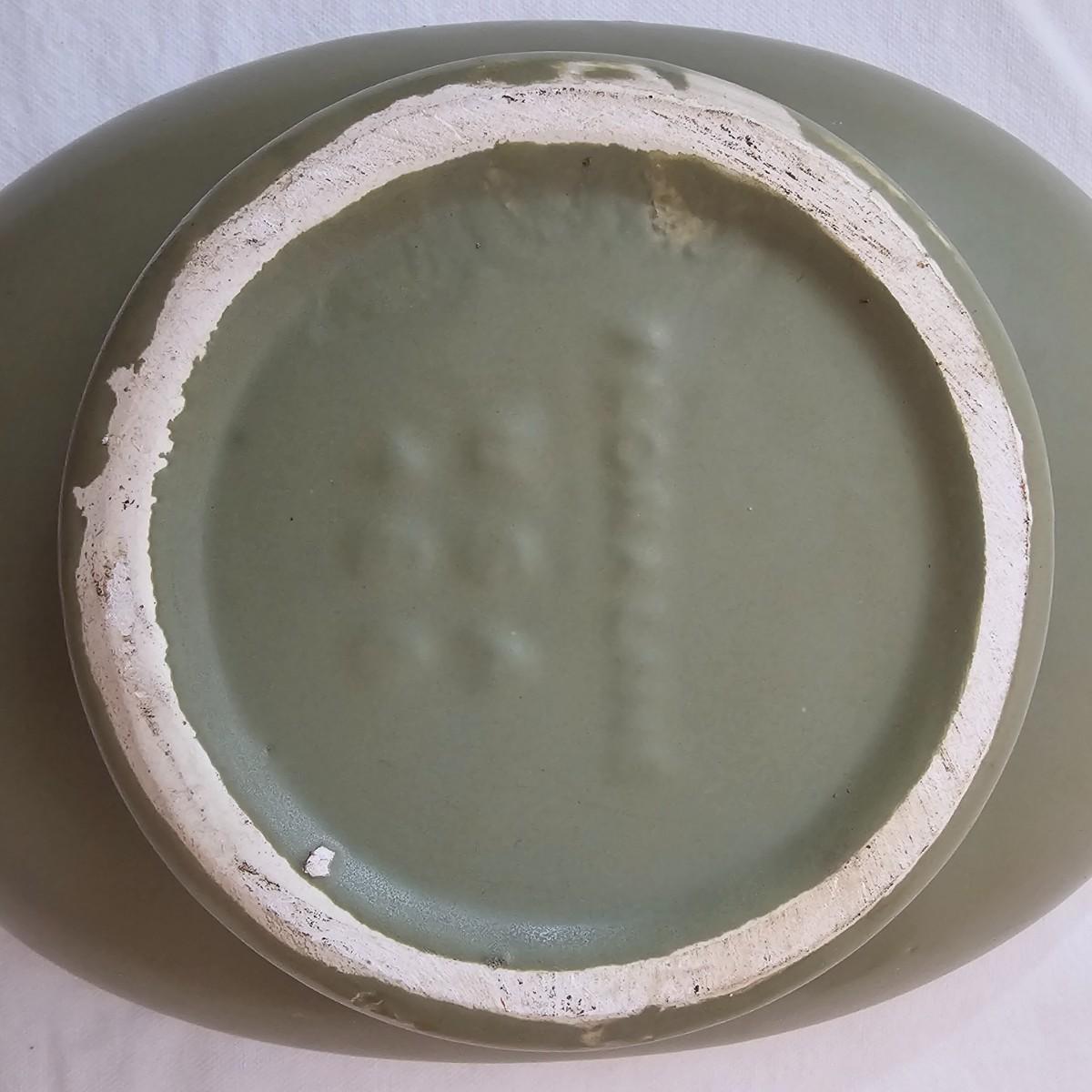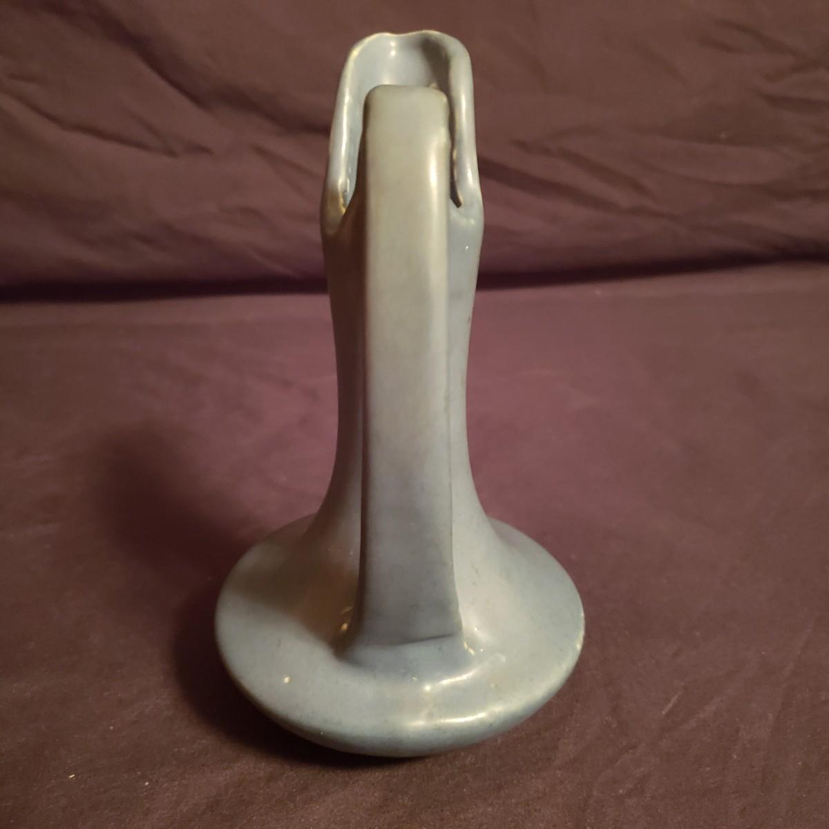 This mixed colored pottery all have a matte finish. The rose colored wall vase measures 3" x 7"H and is stamped Made in USA. There is a raised vine pattern on the front. The finish has a crackled effect and a black scuff mark that may wash off. The white ruffled bowl has R-3 USA stamped on the bottom. There is a small chip on the corner. The blue pitcher is made by Niloak potters. Finally, is a matted green bowl that measures 10" x 7" x 3"H. This bowl appears to be McCoy's Floraline USA. See photos for details.