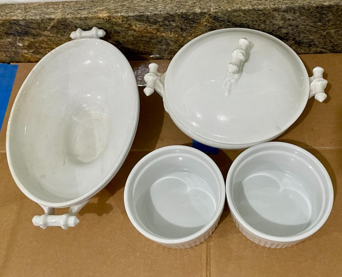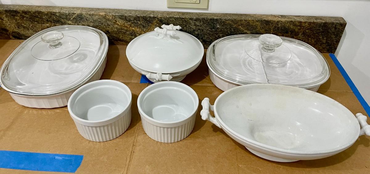 Mixed Corning Ware & Maddock white cookware lot