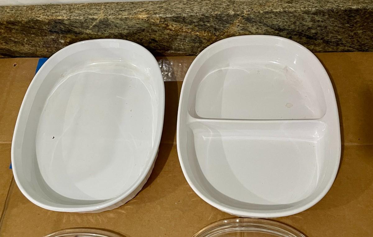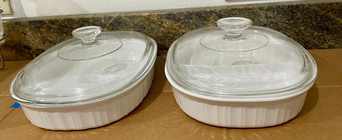 Includes a Corning Ware 1.8L open veg dish and a 1.8L divided veg dish.
