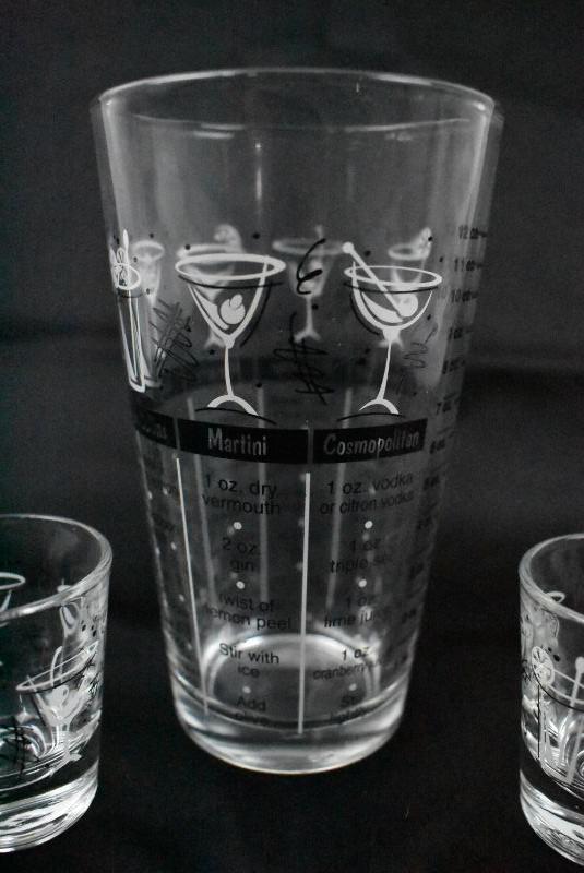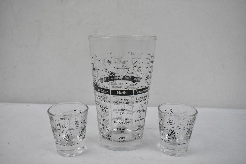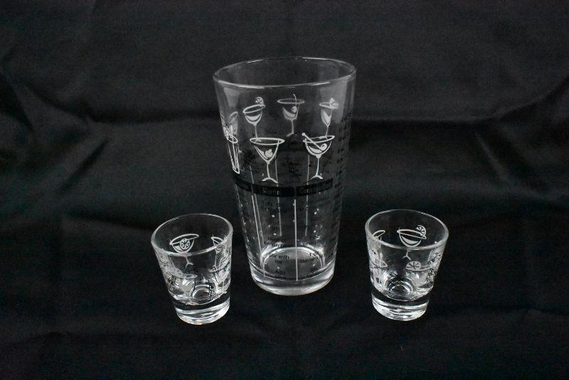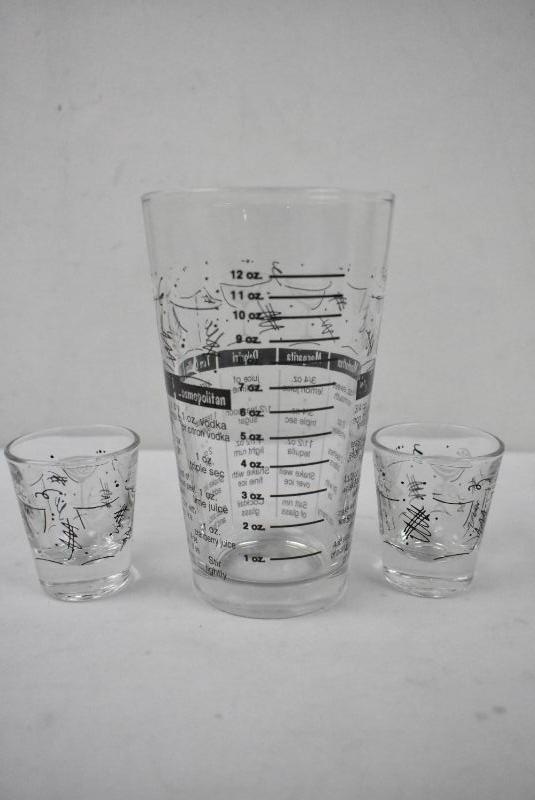 Mixed Drinks Measuring Glass With Coordinating Shot Glasses