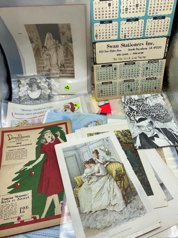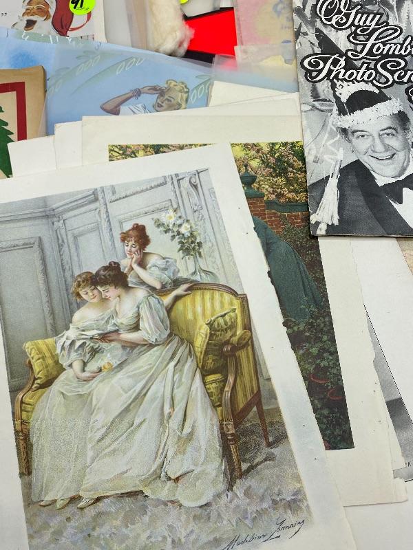 Mixed lot of ephemera and various prints. See photo's for more detail of images. Great frameable prints, Victorian images, retro catalogs.