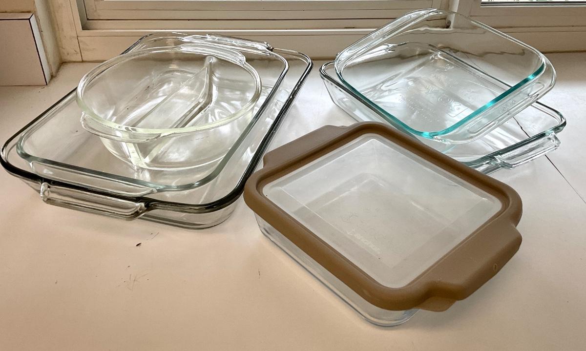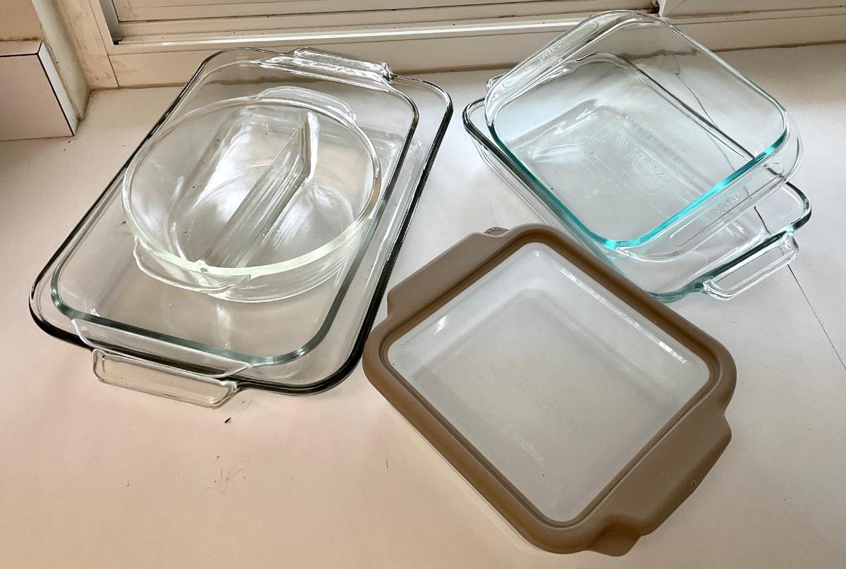 Mixed Glass Pyrex Bakeware Pans and Casseroles Clear
