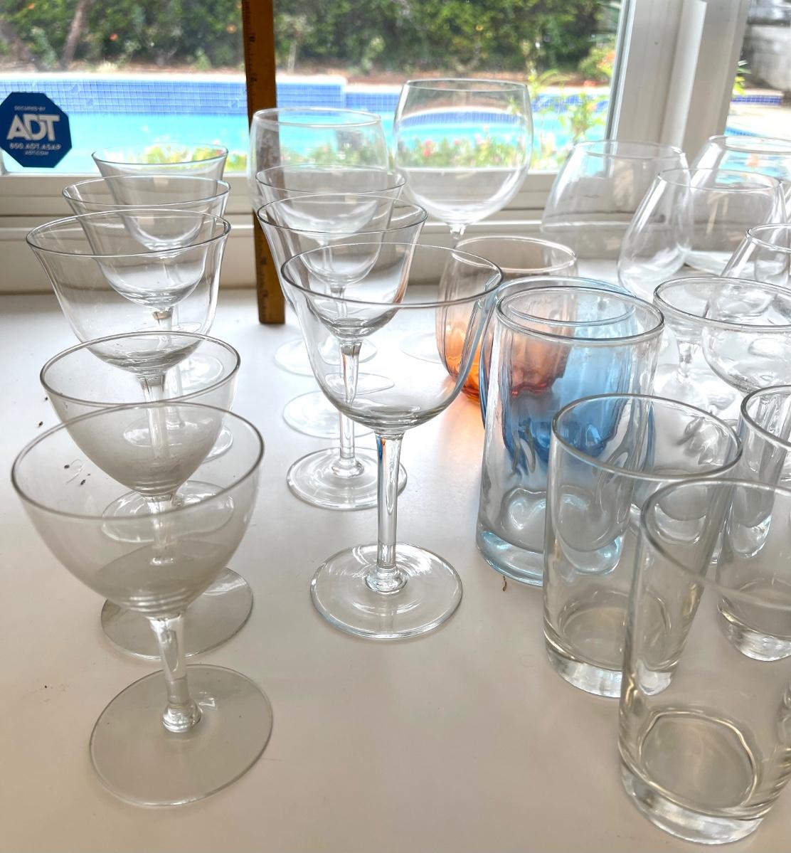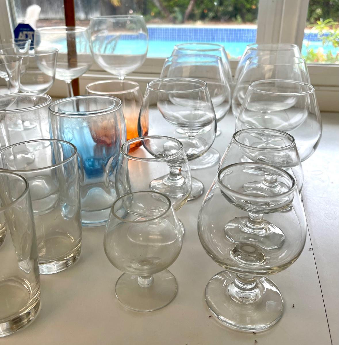 Mixed glasses wine, beverage, brandy - glassware lot F