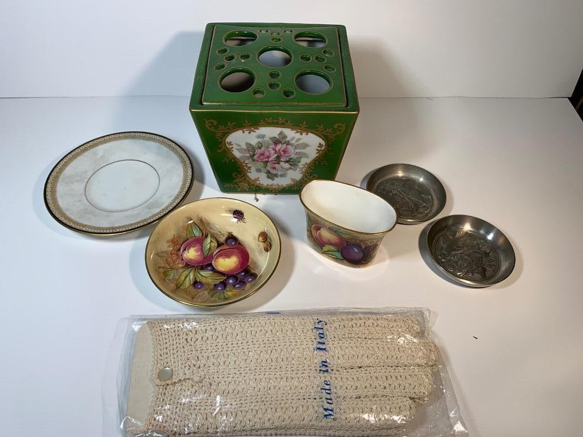 Porcelain flower vase, never used handmade Italian gloves Limoges and others