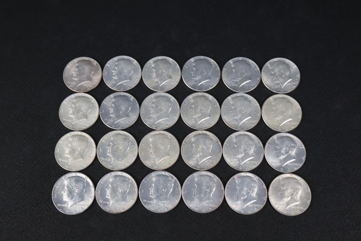 Mixed Kennedy Half Dollars, All 1964, 9.59 Troy ounces (C1-25)