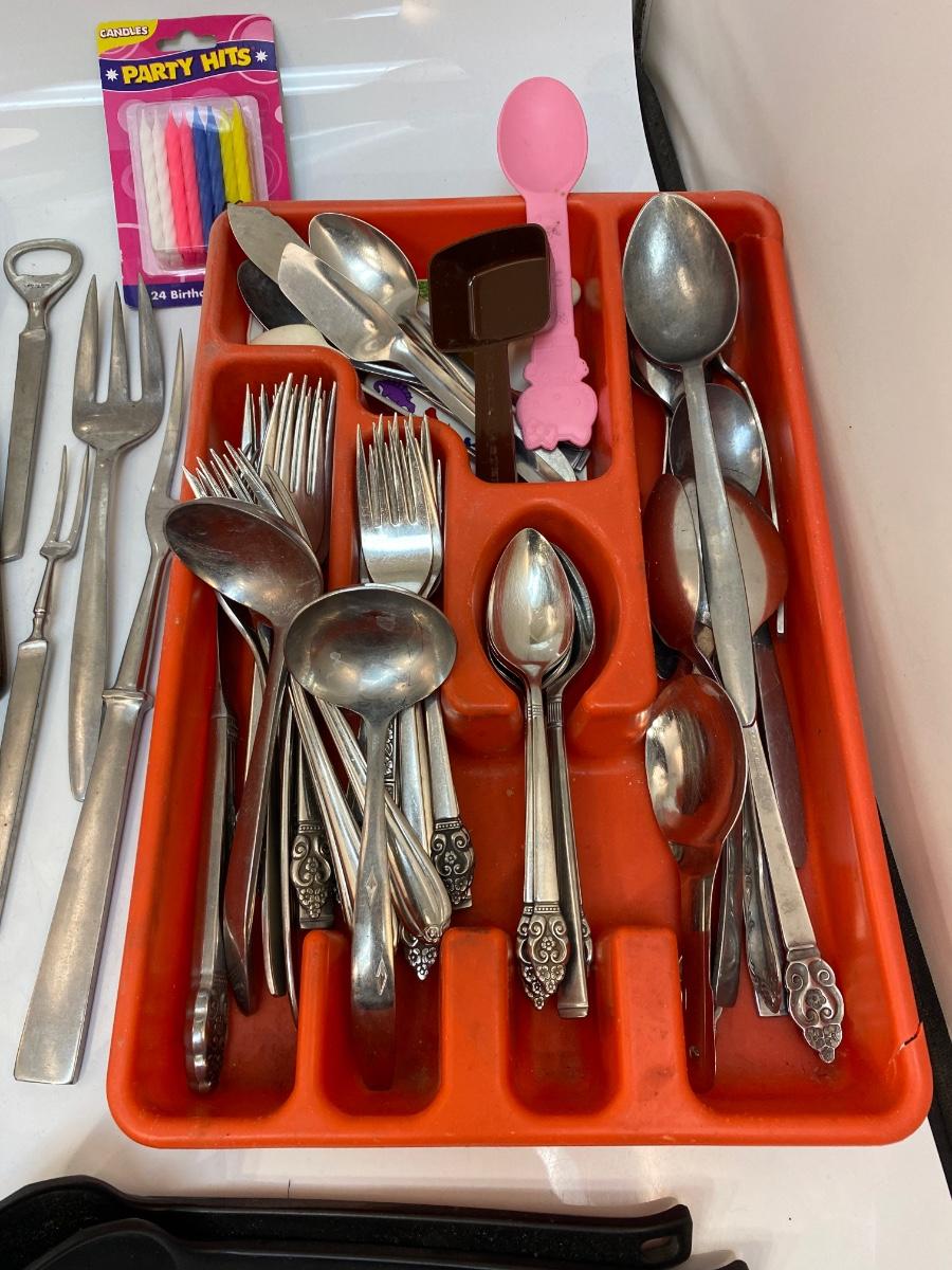 Mixed Kitchen Drawer Lot Silverware Knives Serving Utensils