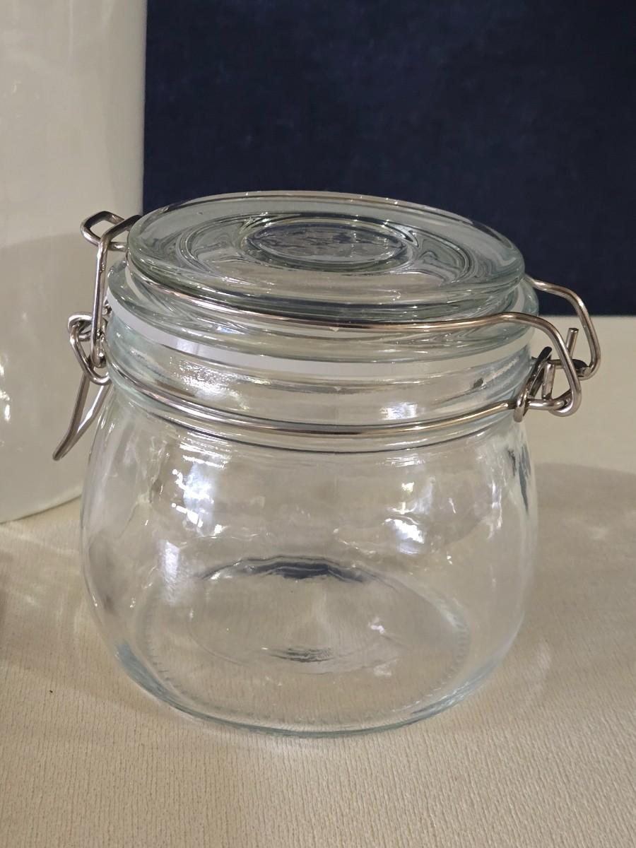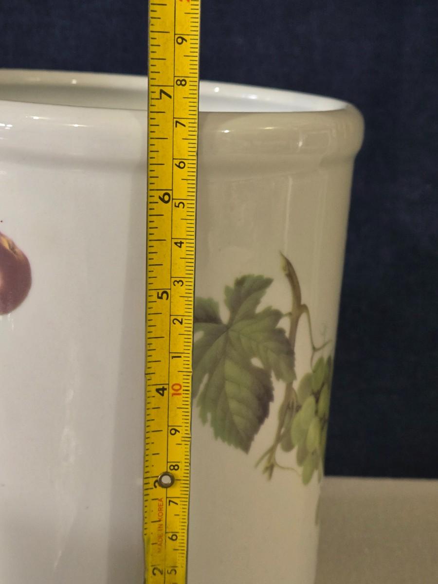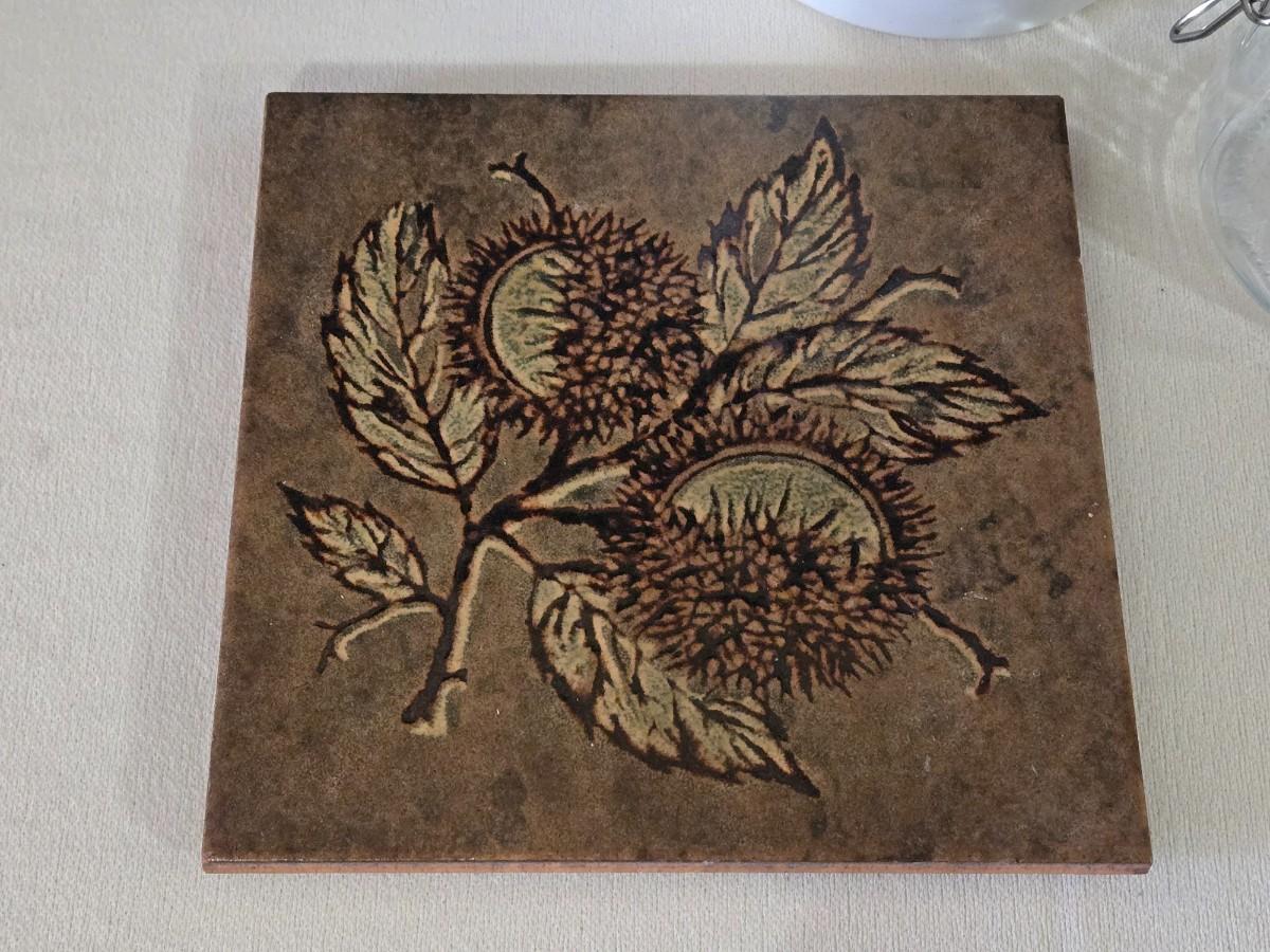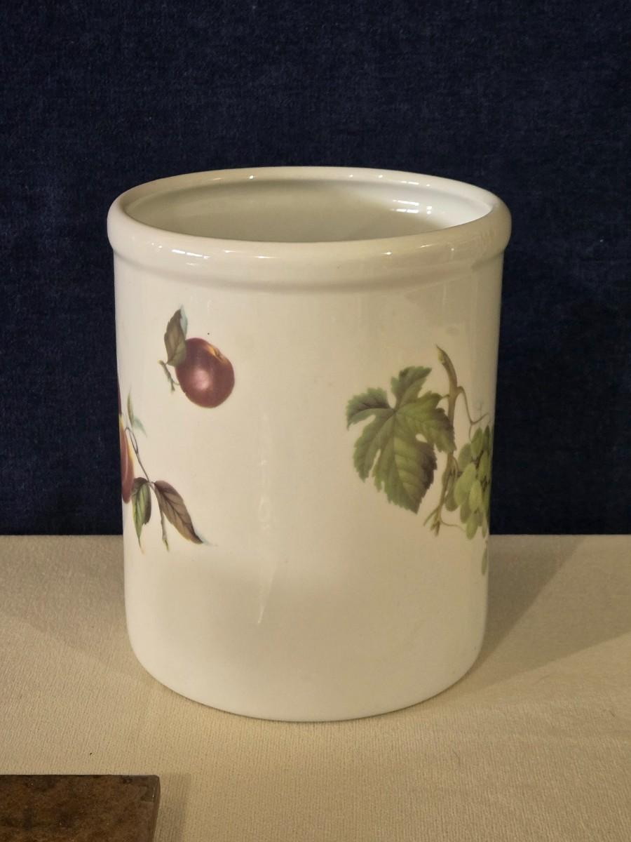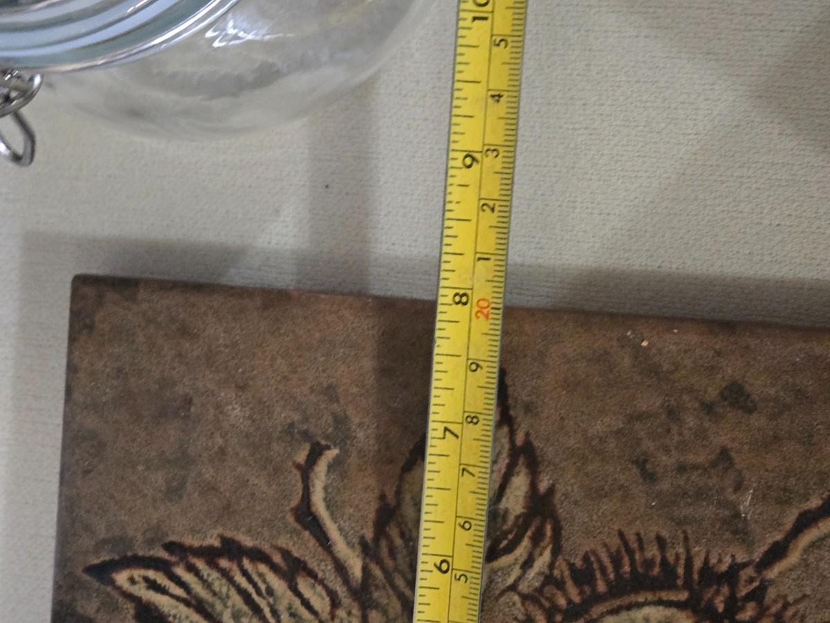 Mixed Kitchen Items - Ceramic Tile Trivet,Glass Jar, and Ceramic Crock Utensil Holder