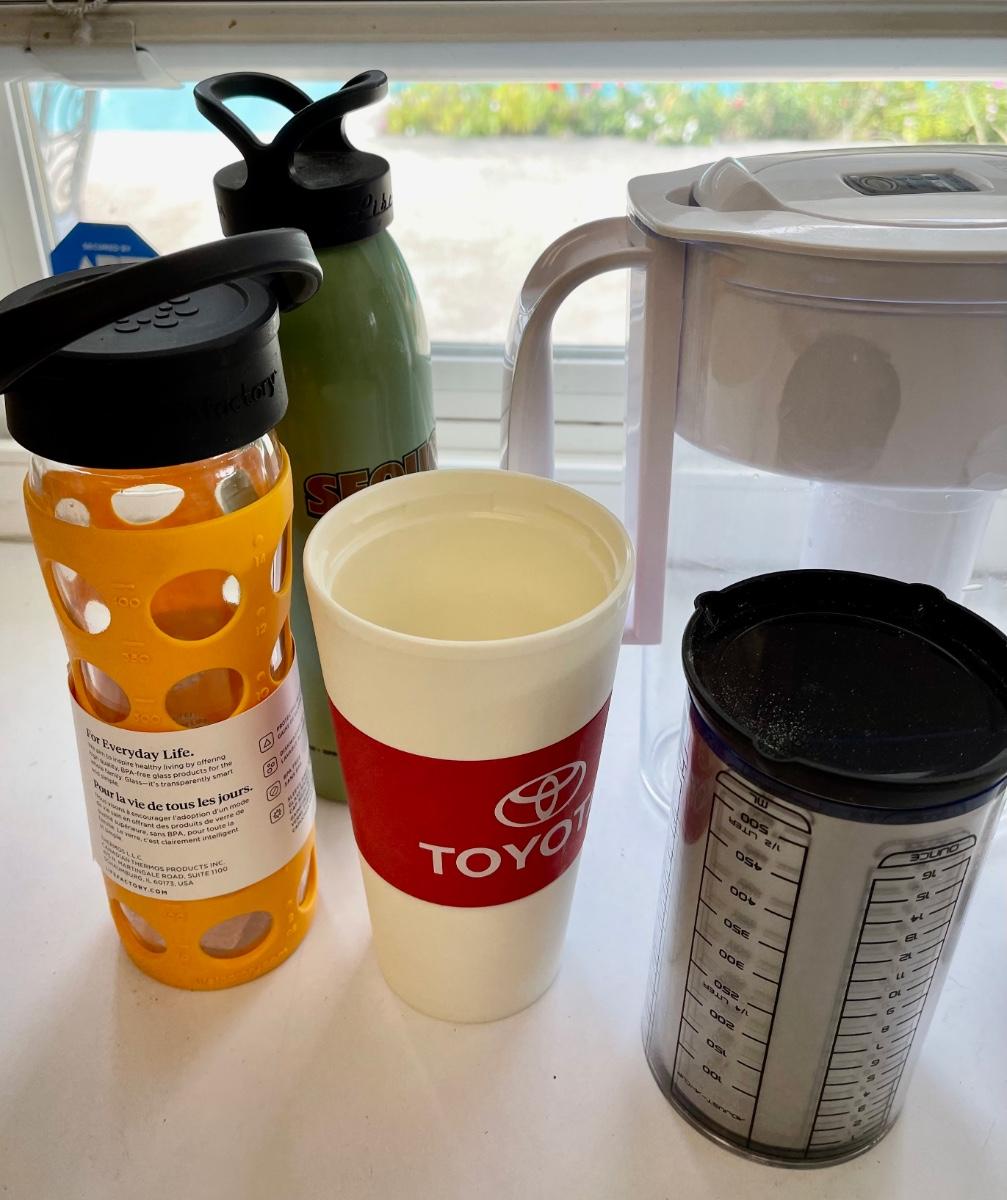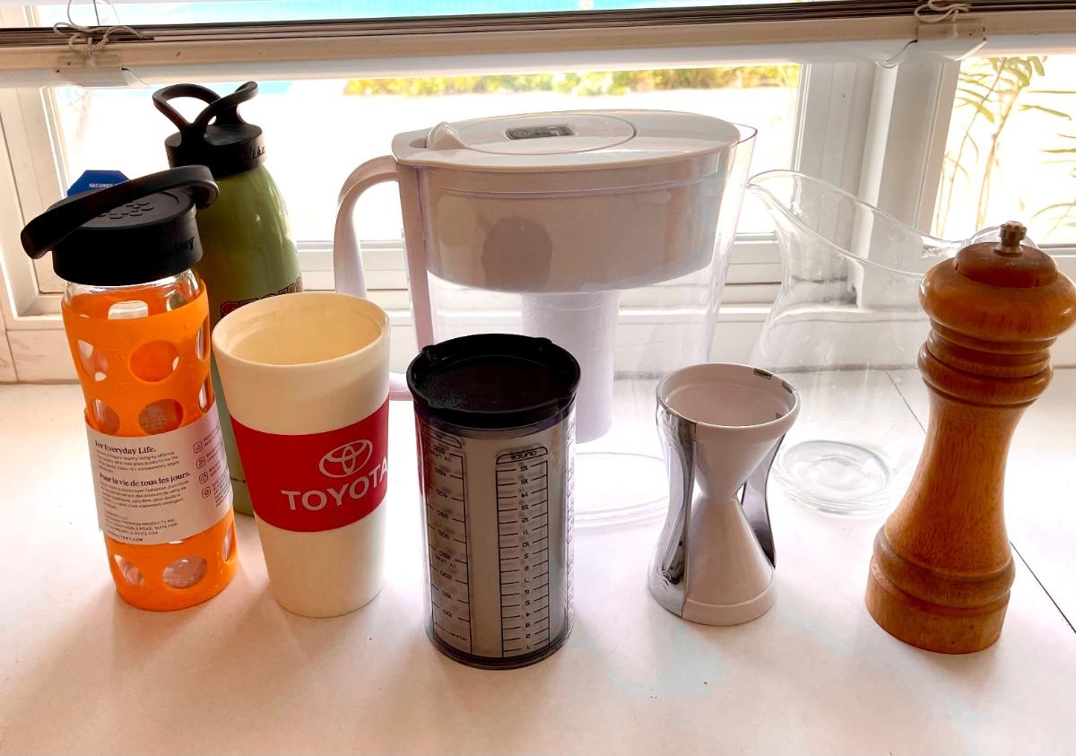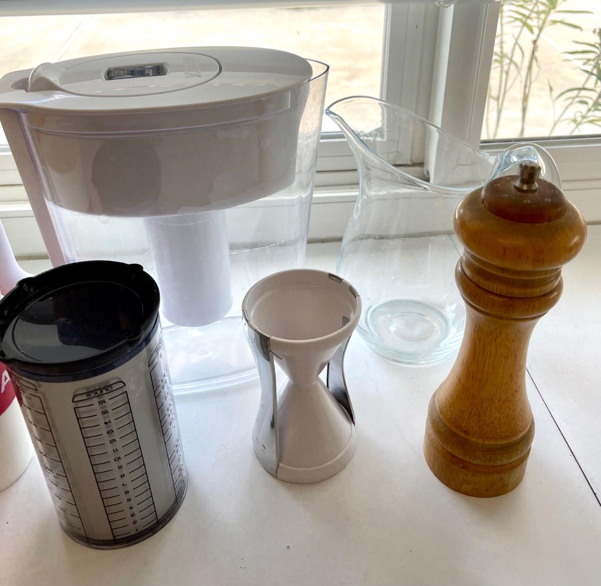 Mixed kitchen lot - Brita, drink containers, salt mill, etc