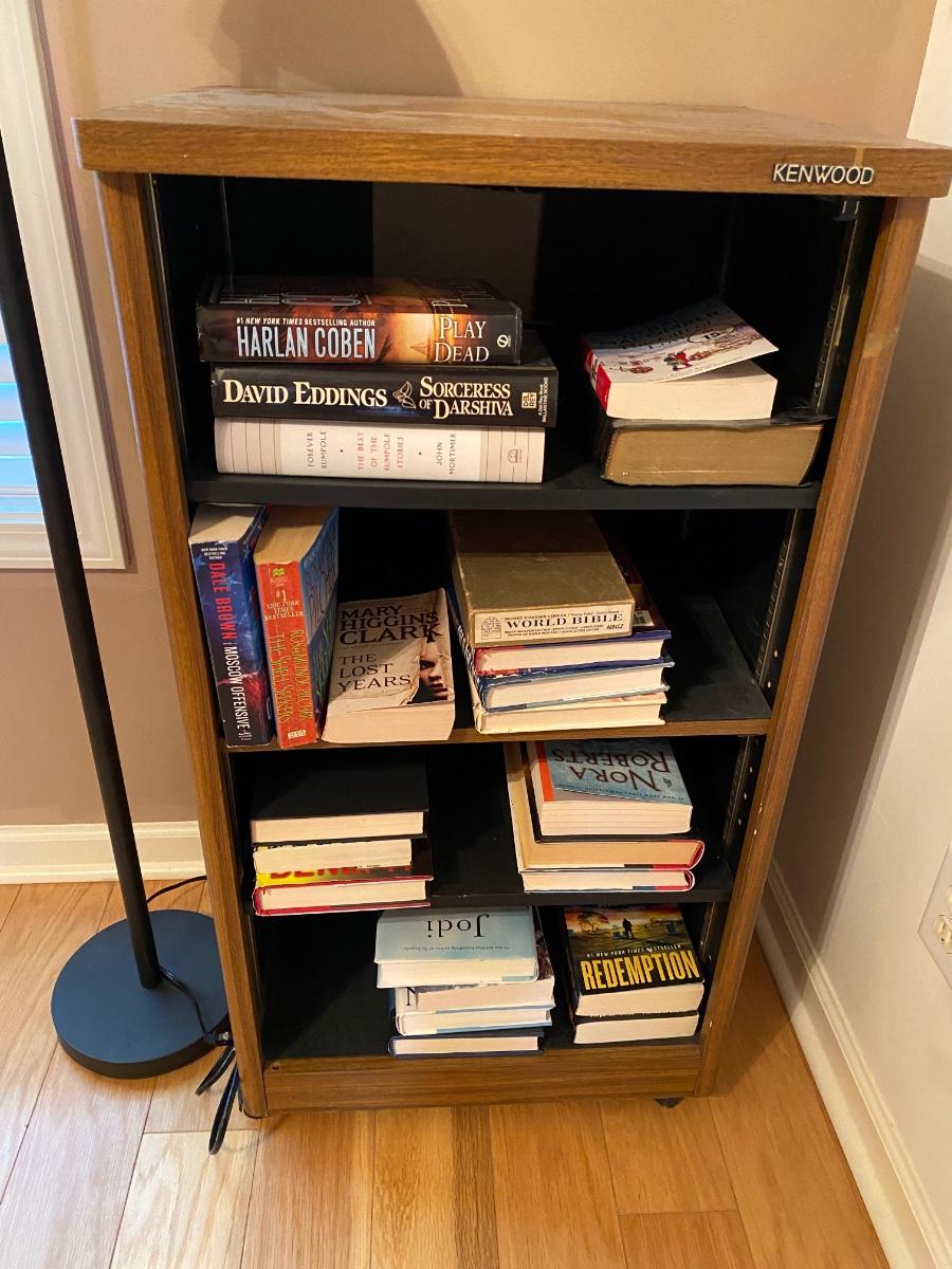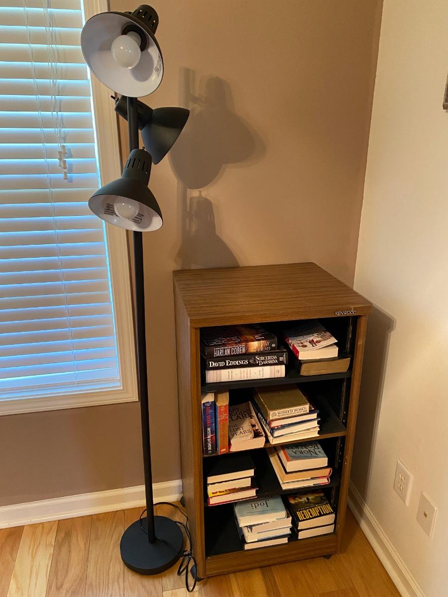 Black Floor Lamp, Kenwood Stereo Cabinet, Misc. Books As Pictured 20.5x18x35 Lamp 67 in. Tall