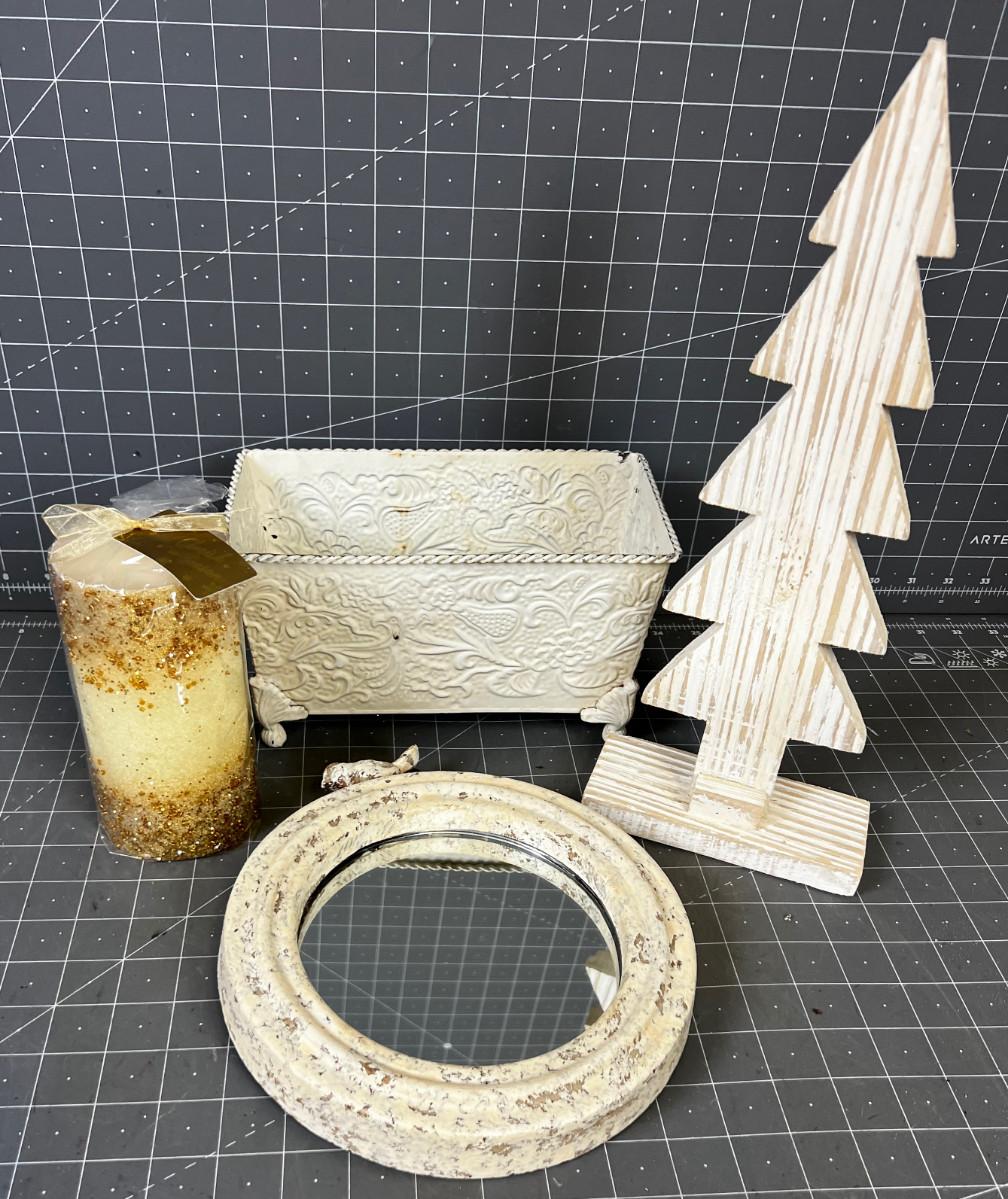 Mixed Log of Cream Mirror, Planter, Wood Tree Etc.
