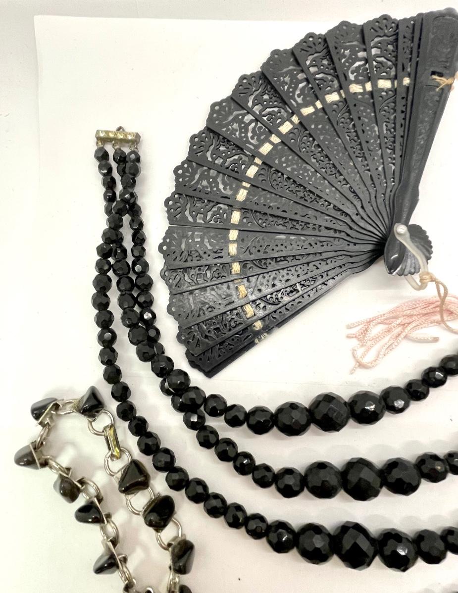 Mixed  JewelryLot - black beaded neck;laces, bracelet, amd small fan
