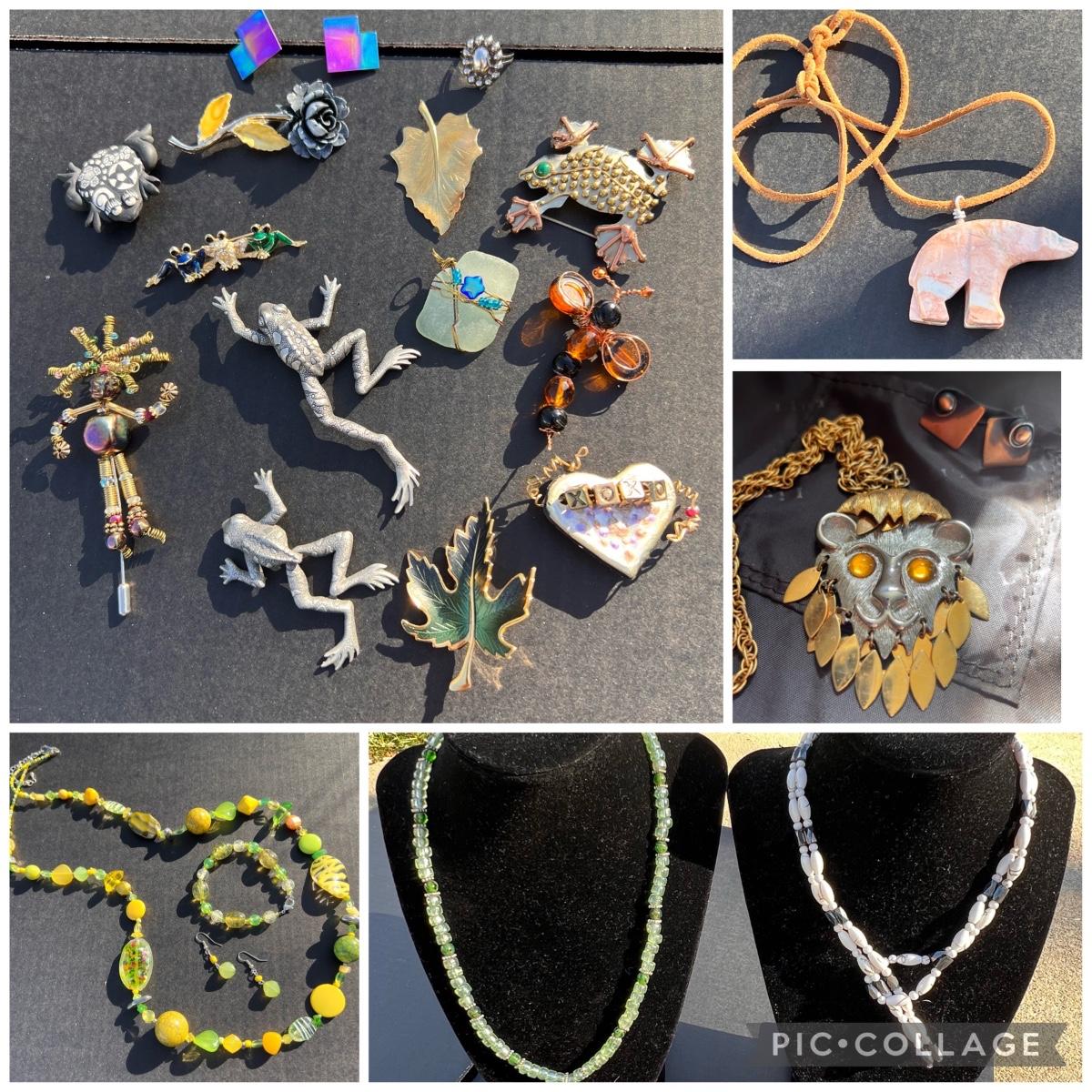 Brooches, necklaces, earrings, ring, pendent, necklace bracelet erasing set, vintage copper screw back earrings, vintage moveable lion necklace