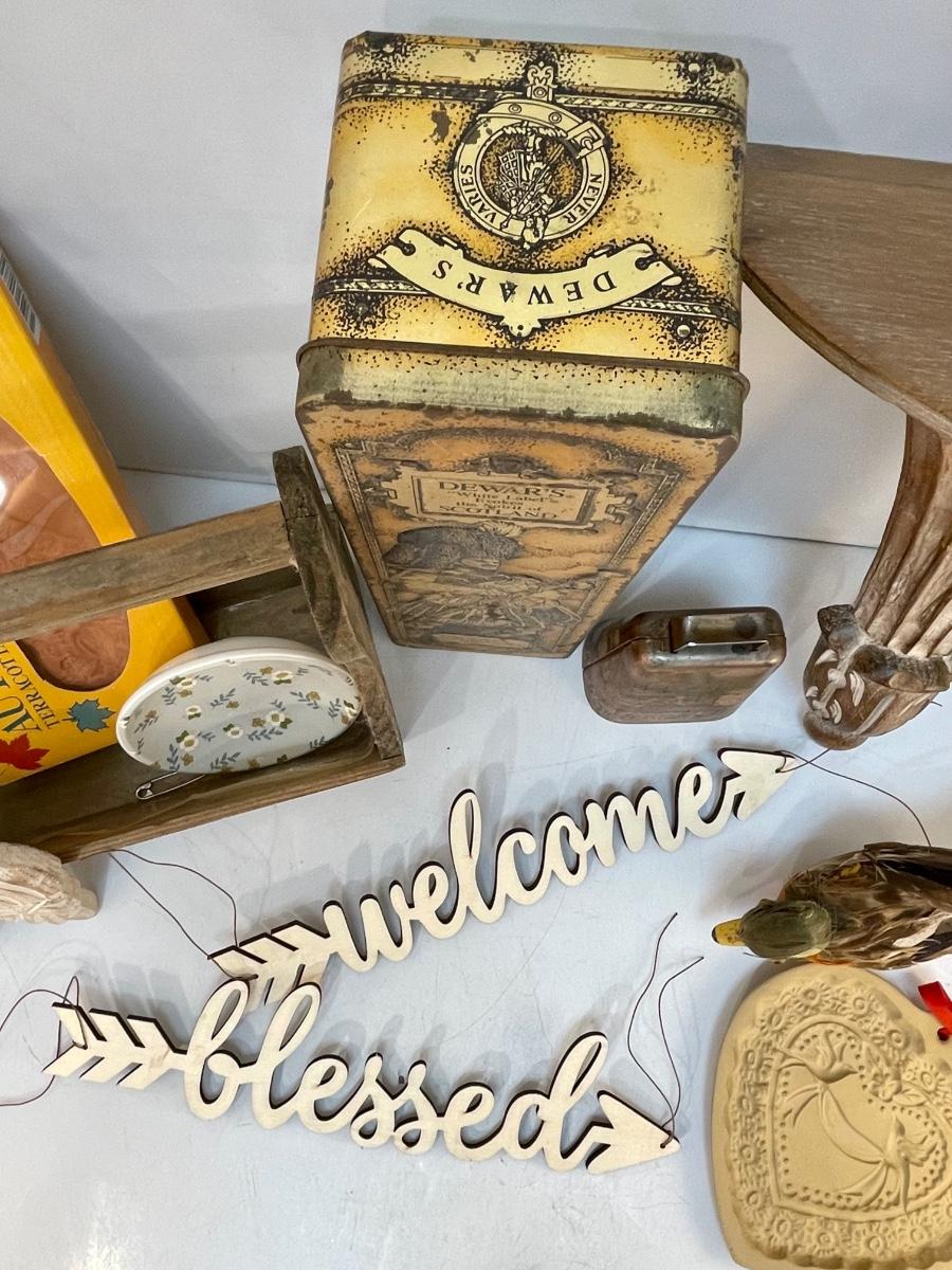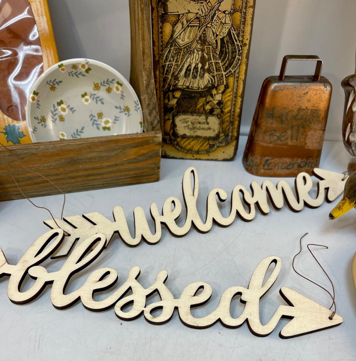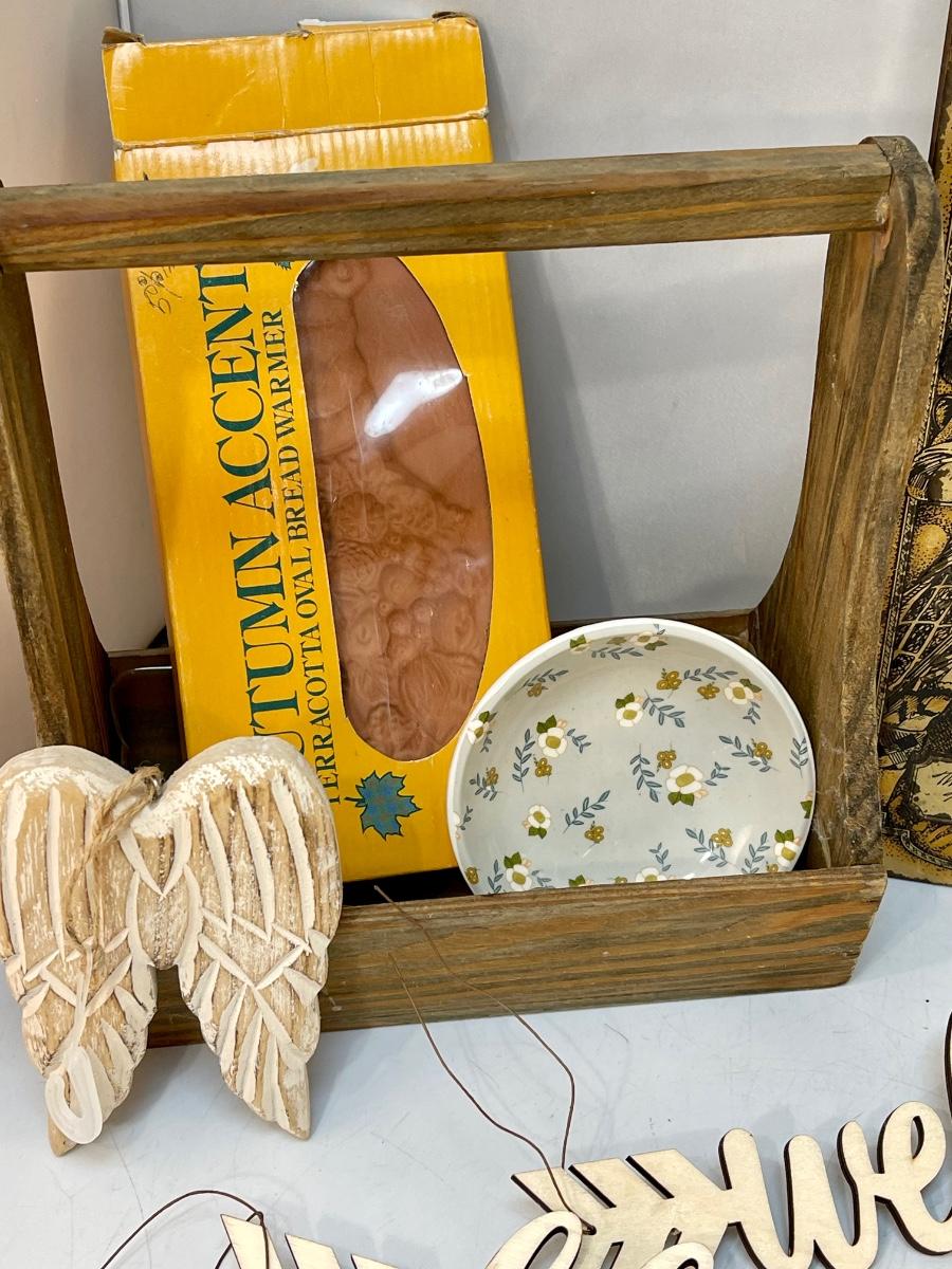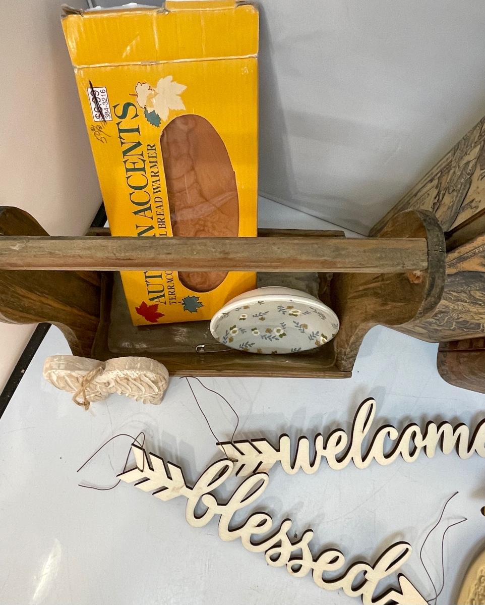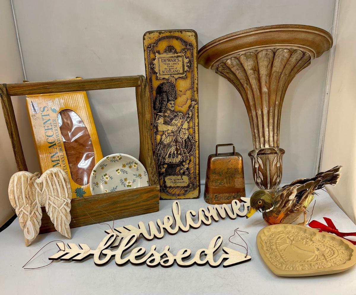 Mixed Lot - Fall Seasonal Decor - Sconce, Bell, Basket, Signs, Tin, Clay Baking Tools