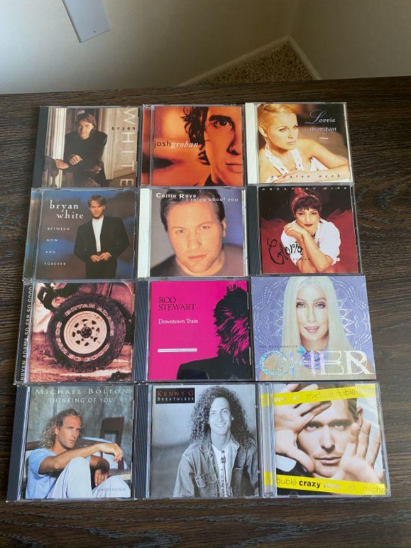 Mixed lot of 12 Cds. Artists included are Bryan White (2), Bryan Adams, Michael Bolton, Josh Groban, Collin Raye, Rod Stewart, Kenny G, Lorrie Morgan, Gloria Estafan, Cher, And Michael Buble. All Cds are in great condition.