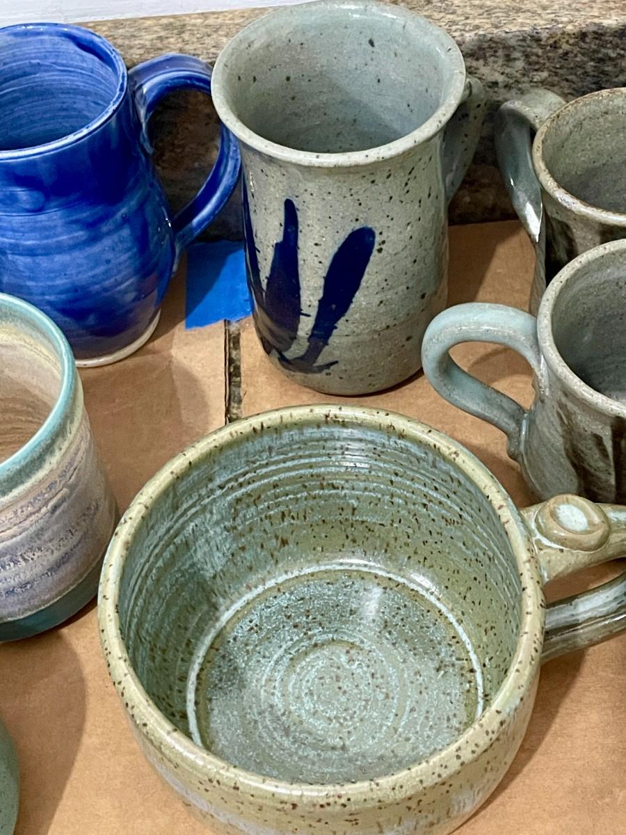 Mixed lot of 12 hand-thrown pottery mugs