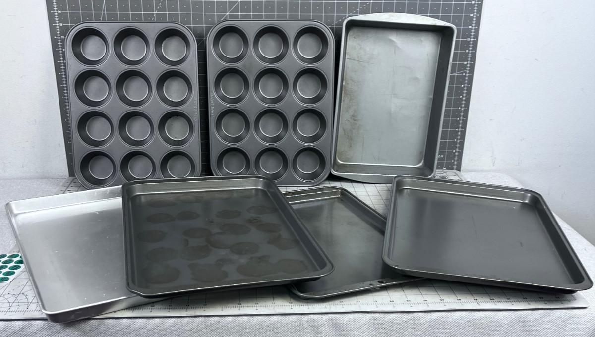 Mixed Lot of 4 Cookies Sheets, 2 Muffin and one Cake Pan
