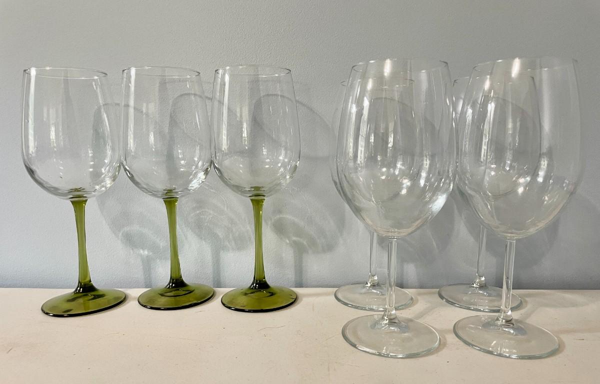 Mixed lot of 7 wine glasses