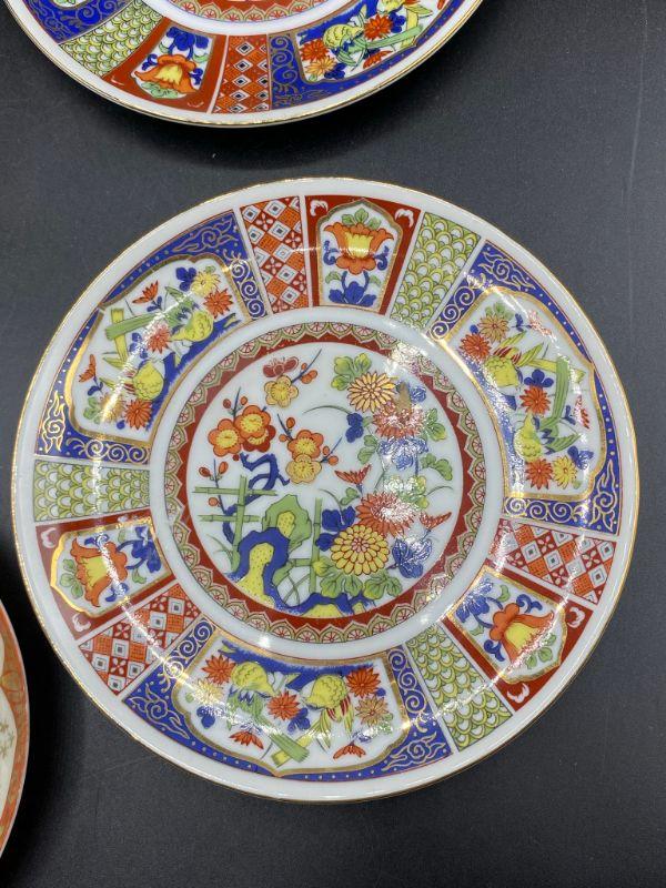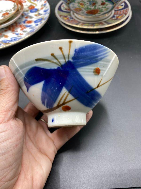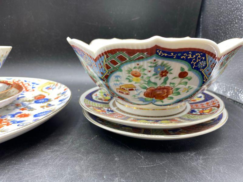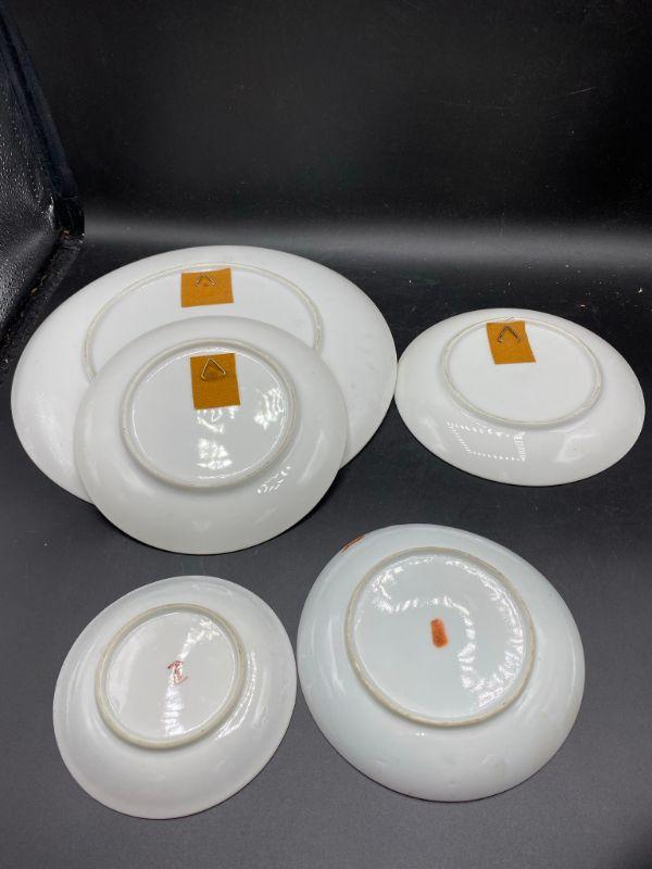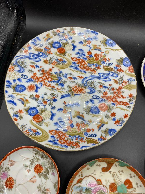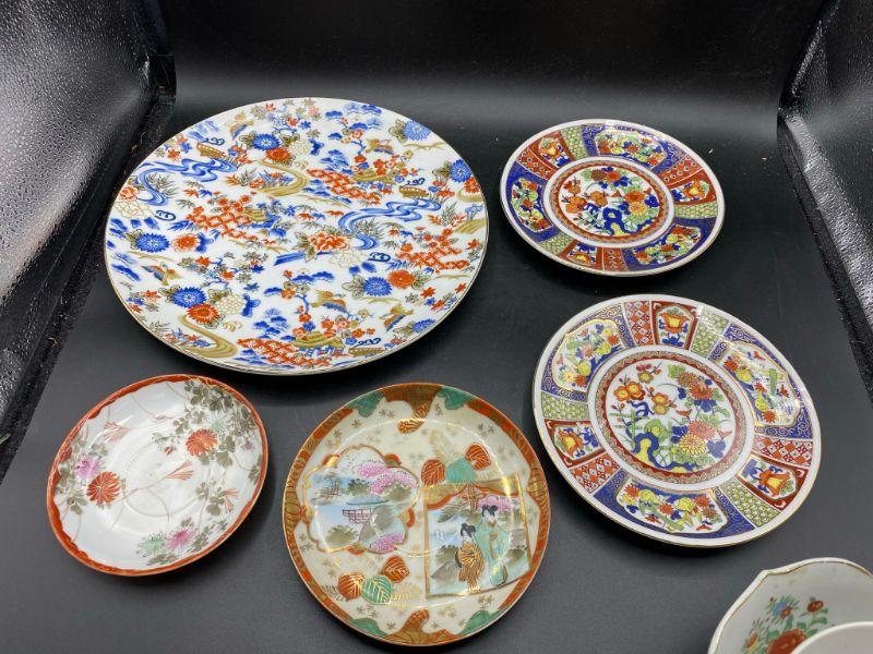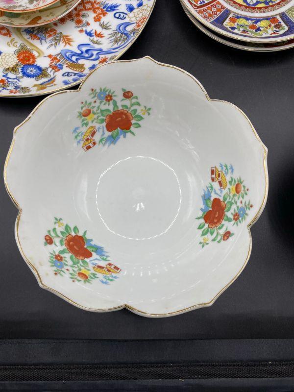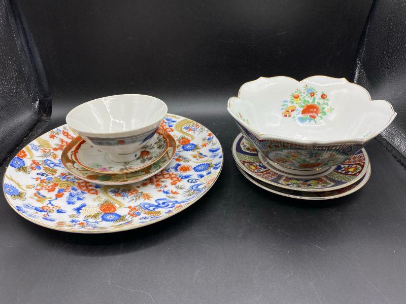 Mixed lot of Asian inspired dishes. Everything photo'd included. Some have marks, some do not. Colorful blue and orange designs. Good conditions.