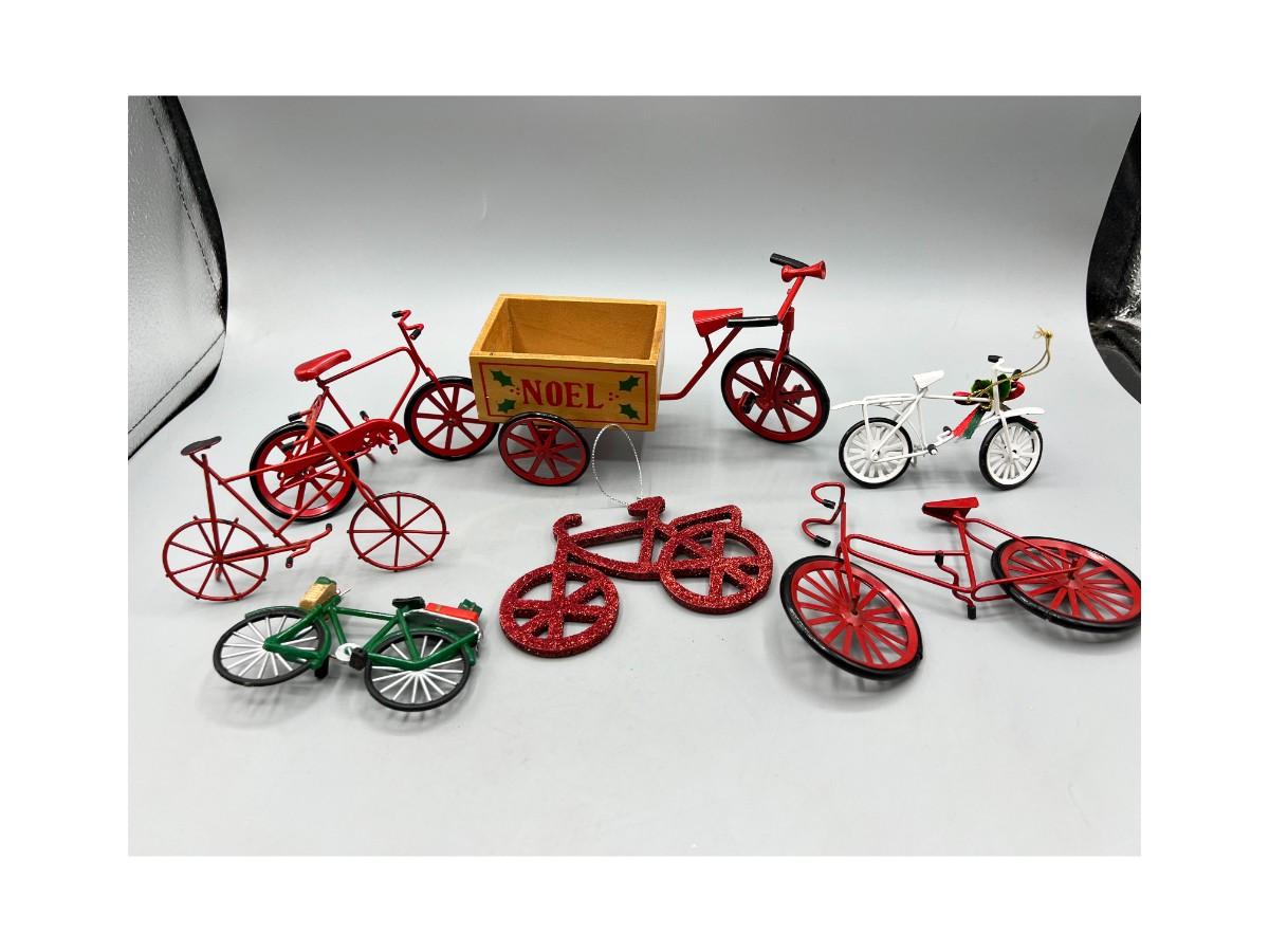 Mixed Lot of Bike Bicycle Christmas Holiday Tree Ornaments. Good condition.