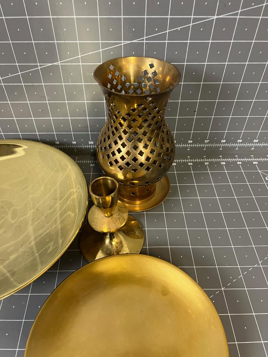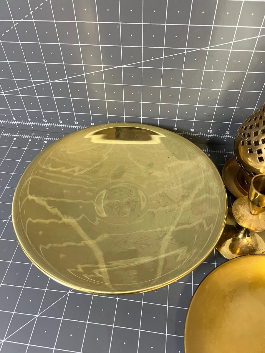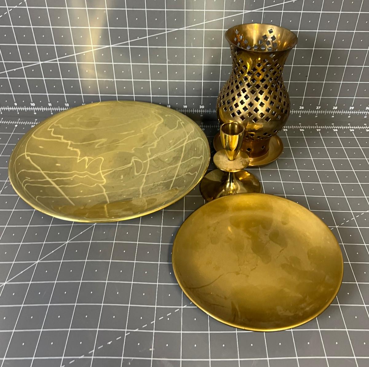 Mixed Lot of Brass Items Candle Holder and Dish