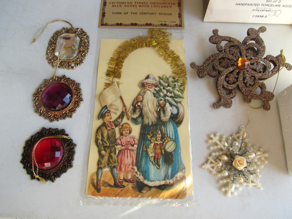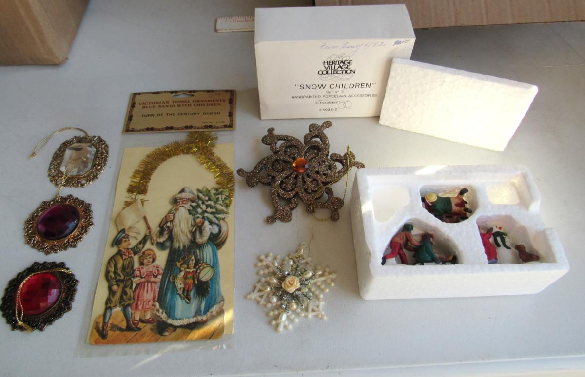 Mixed Lot of Christmas Decor, Dept 56 Figurines, Glittered Ornaments