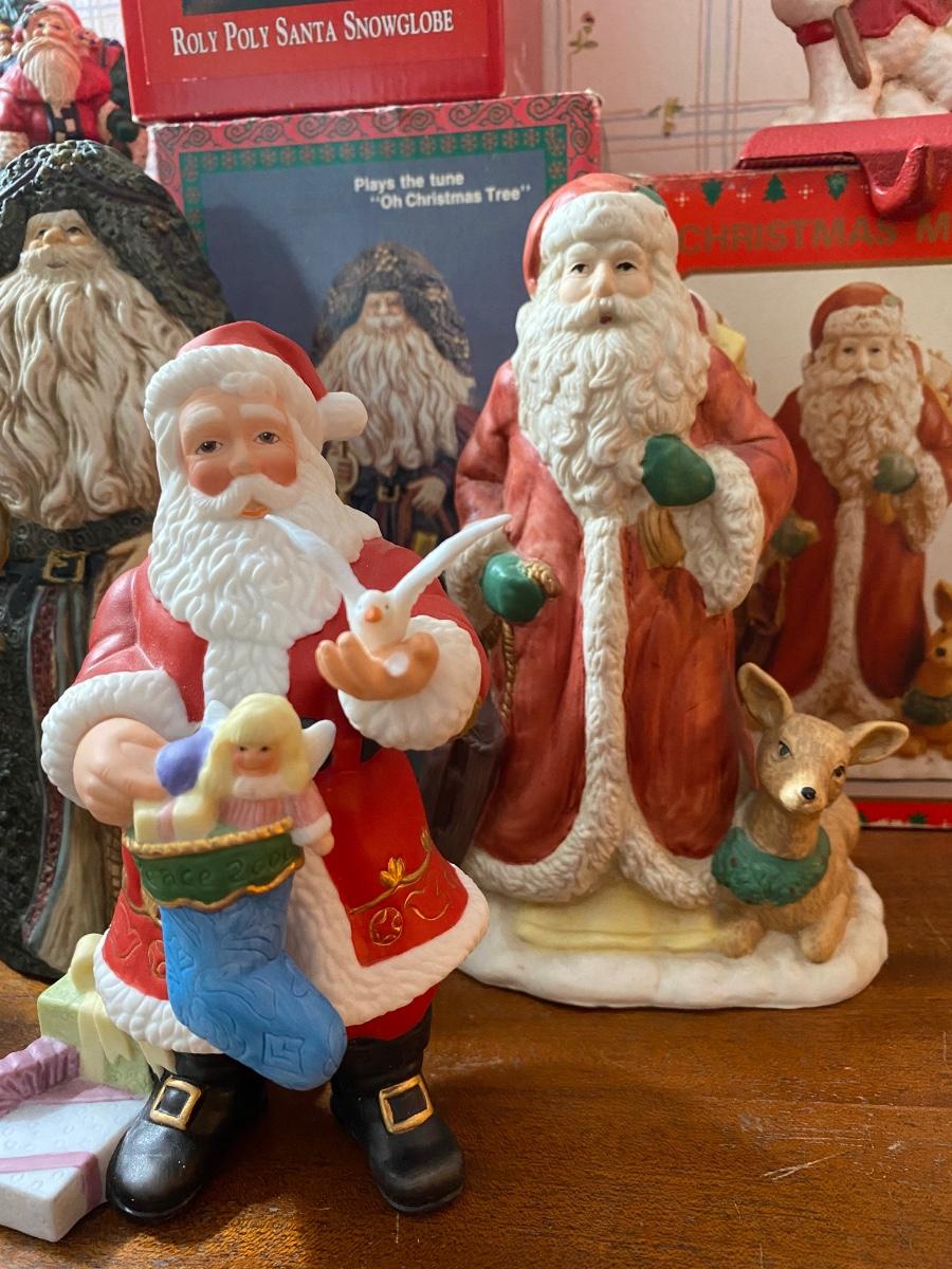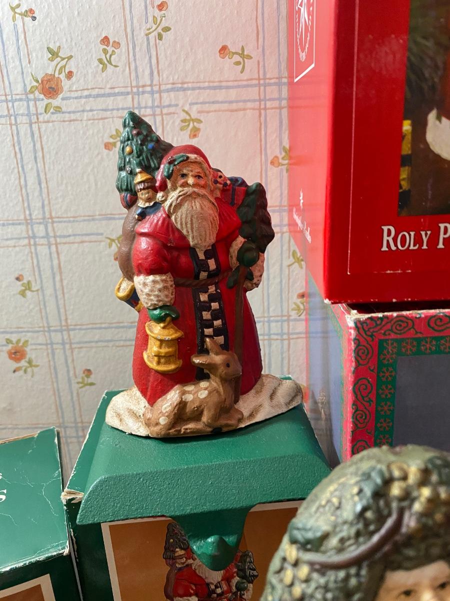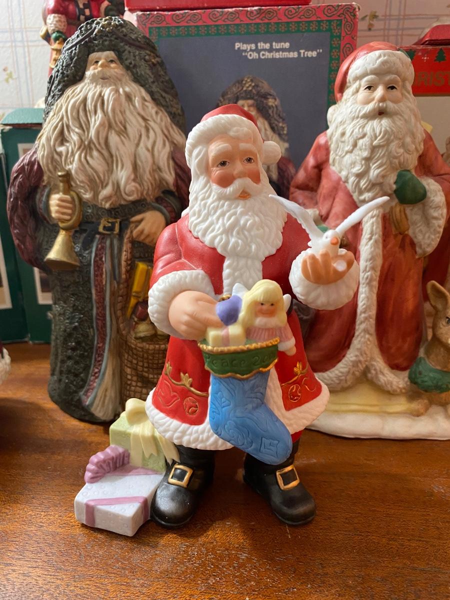 Mixed Lot of Christmas Holiday Santa Claus Figurines and Stocking Hangers with Boxes. Lot of 6 figurines.