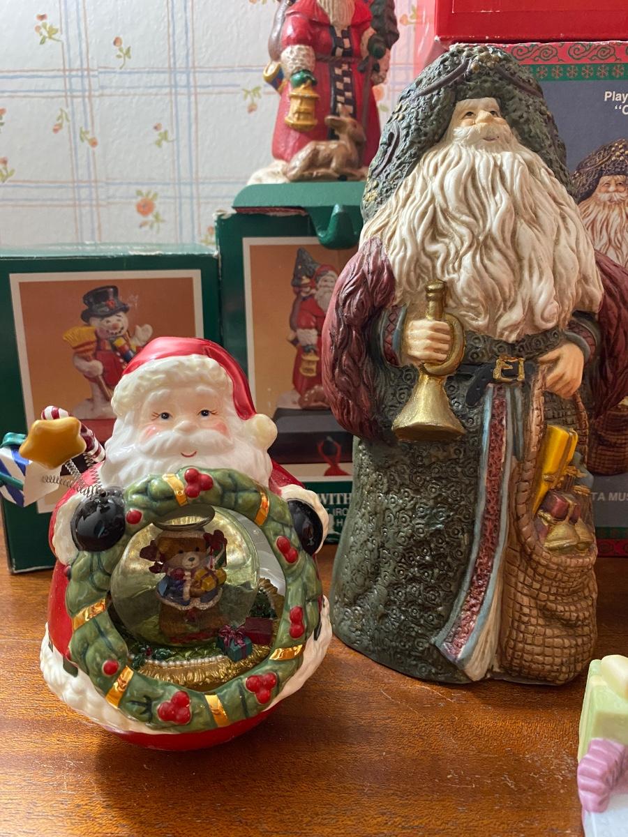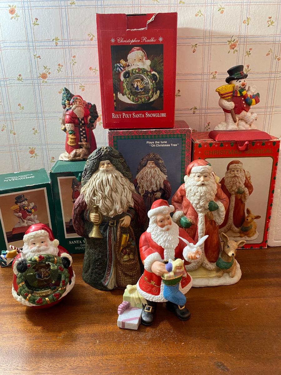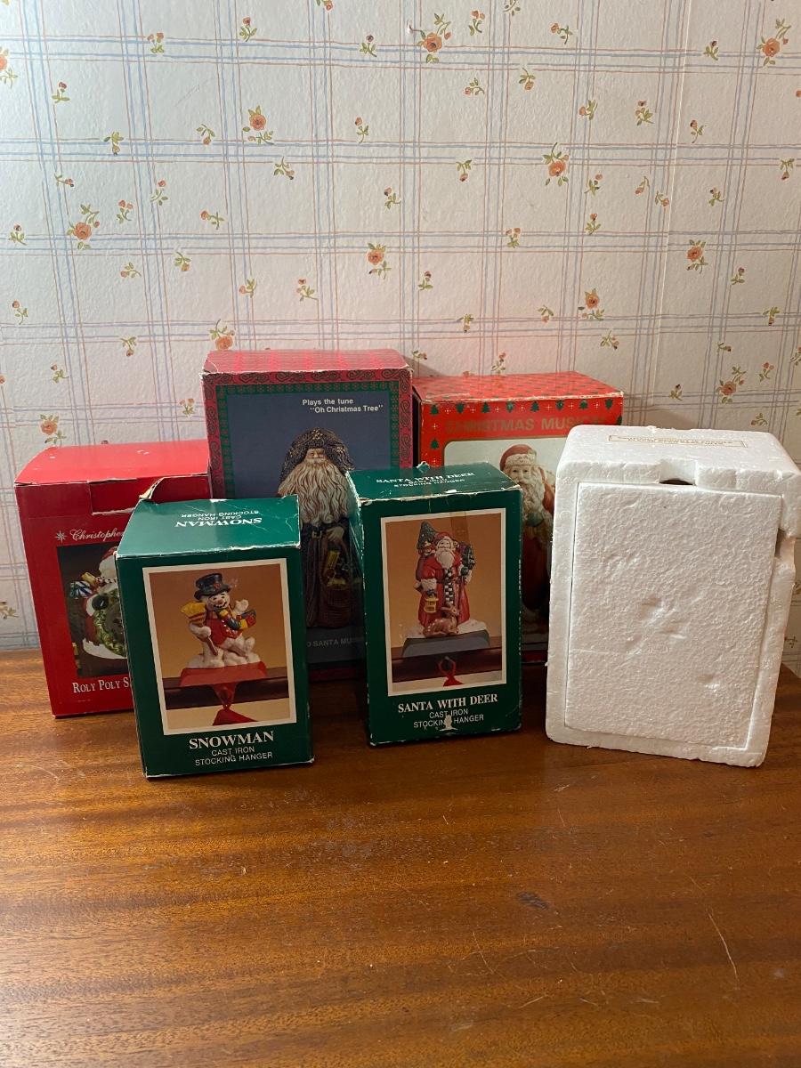 Mixed Lot of Christmas Holiday Santa Claus Figurines and Stocking Hangers with Boxes