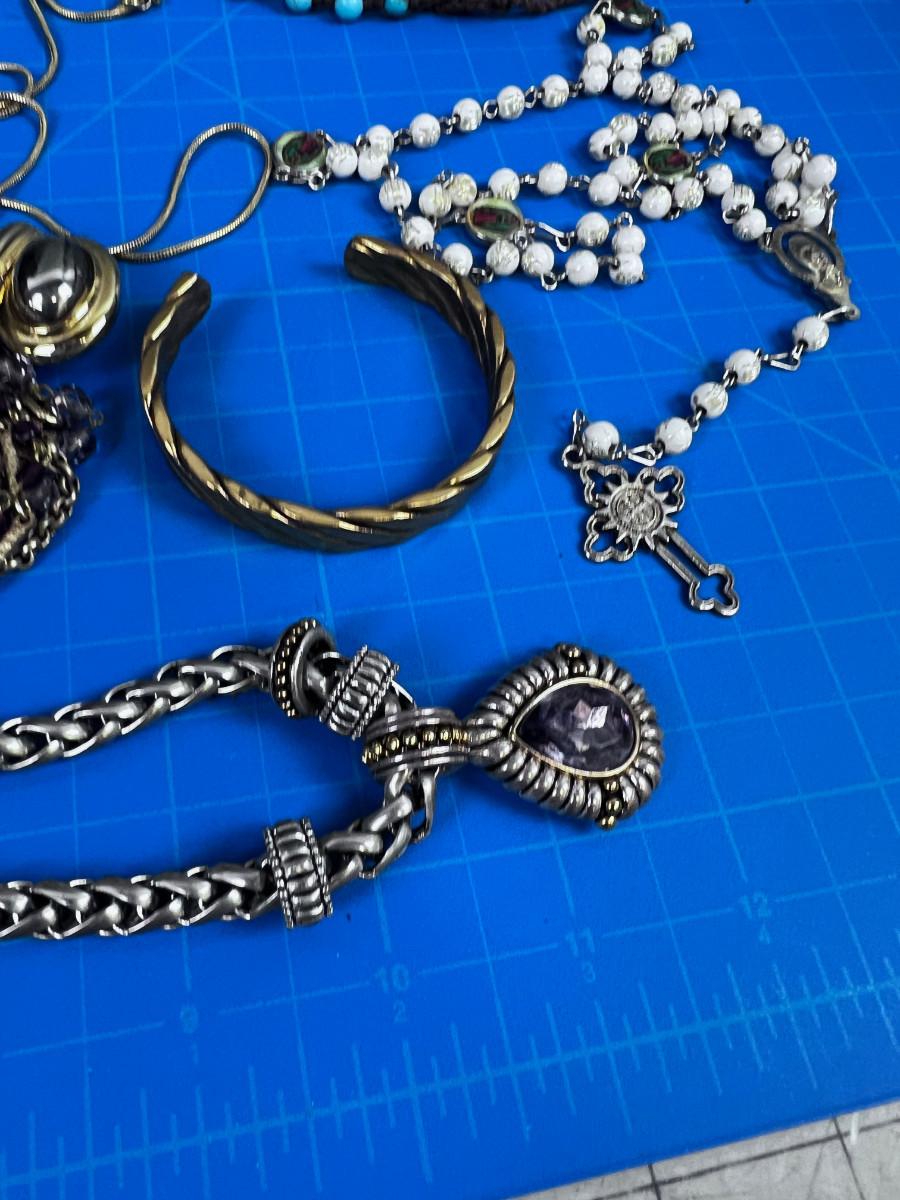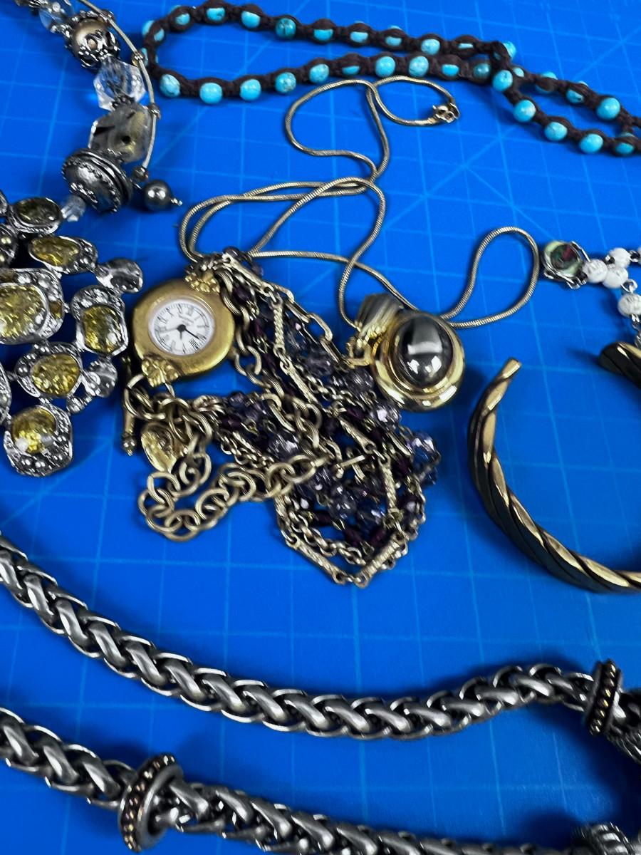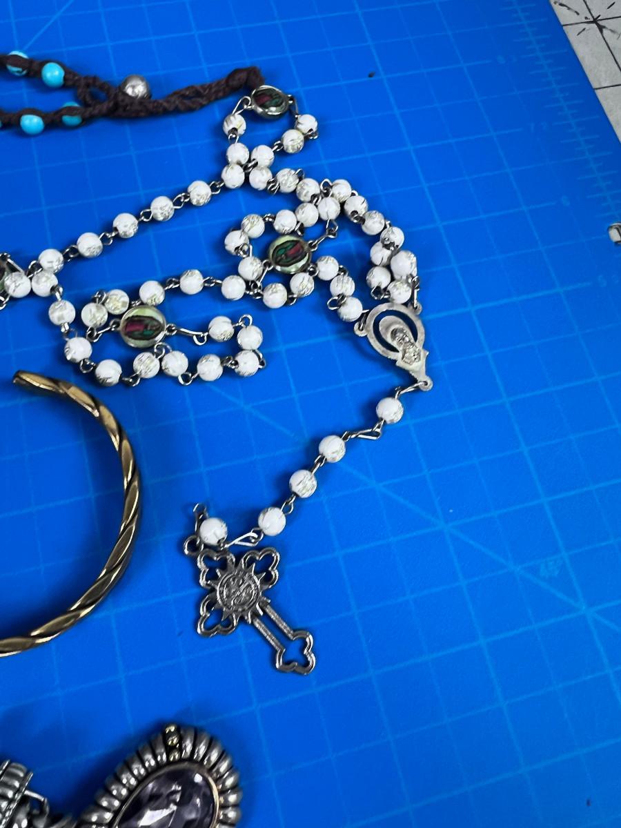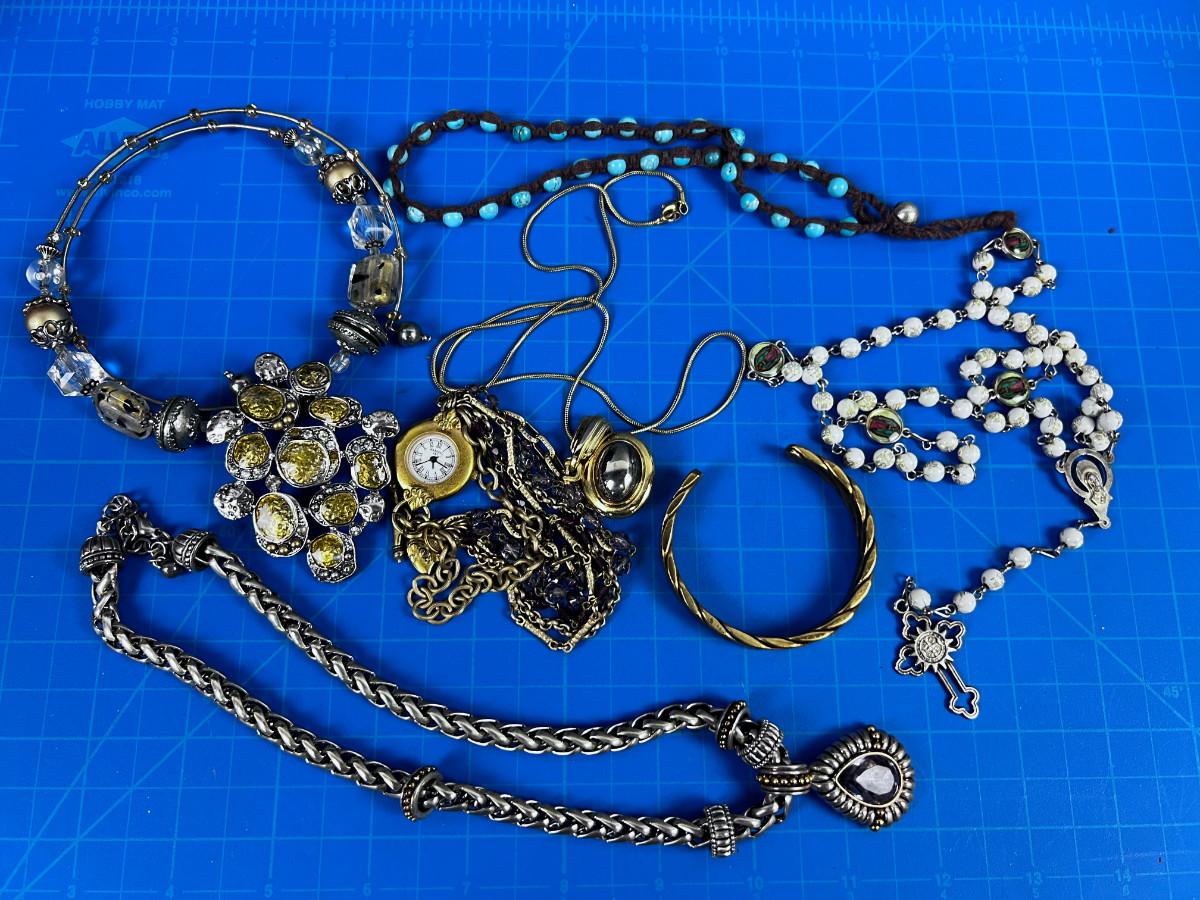 Mixed Lot of Chunky Clunky Jewelry; Bracelet, Necklace, Watch, Rosary Etc.