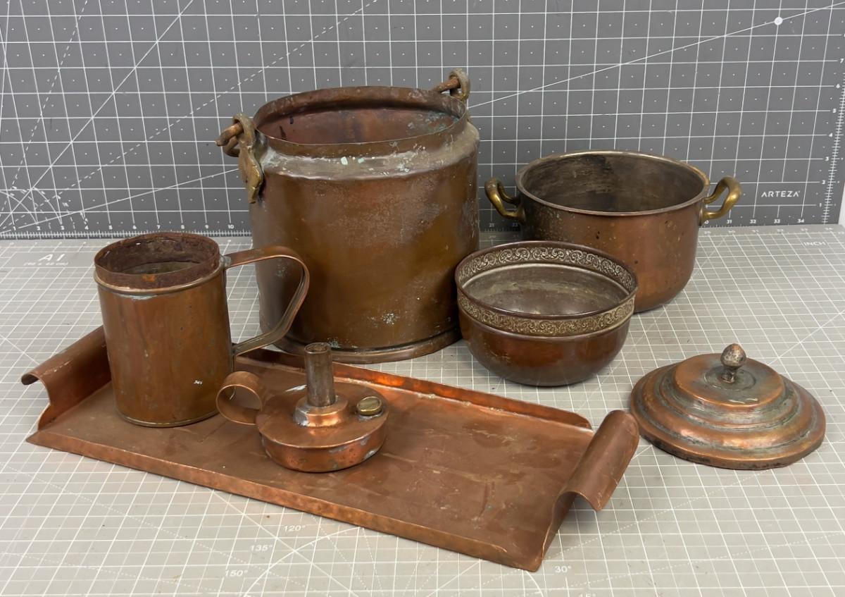 Mixed Lot of Copper Items: Bowls, Buckets and Trays