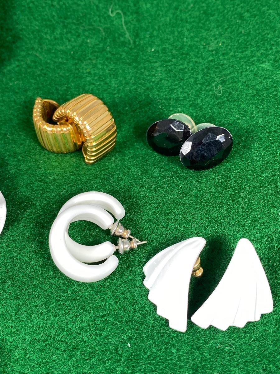 Mixed fashion jewelry lot of earrings. Gold tone metals and enamel finishes. Good previously worn condition.