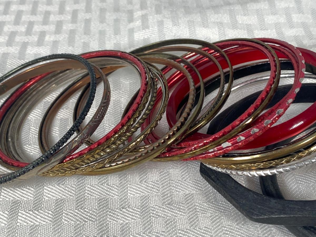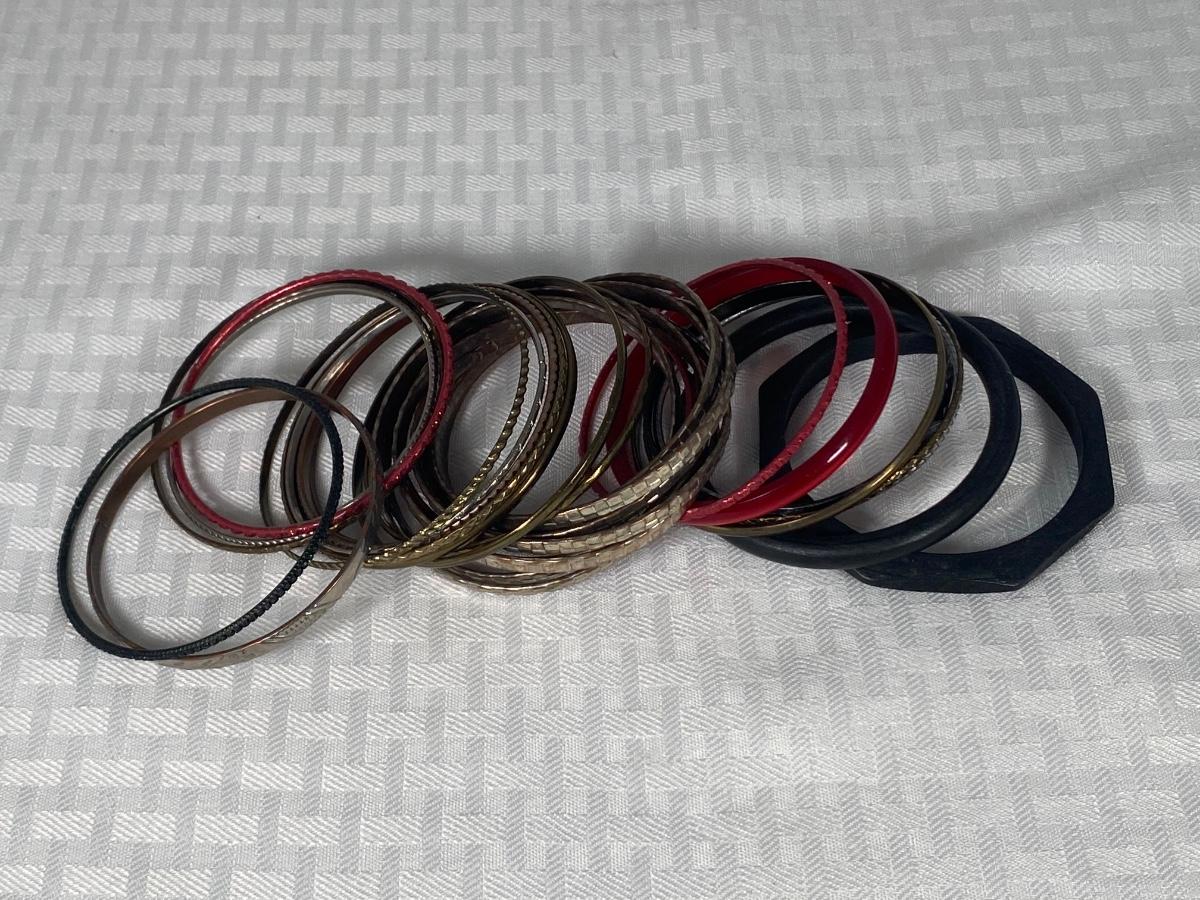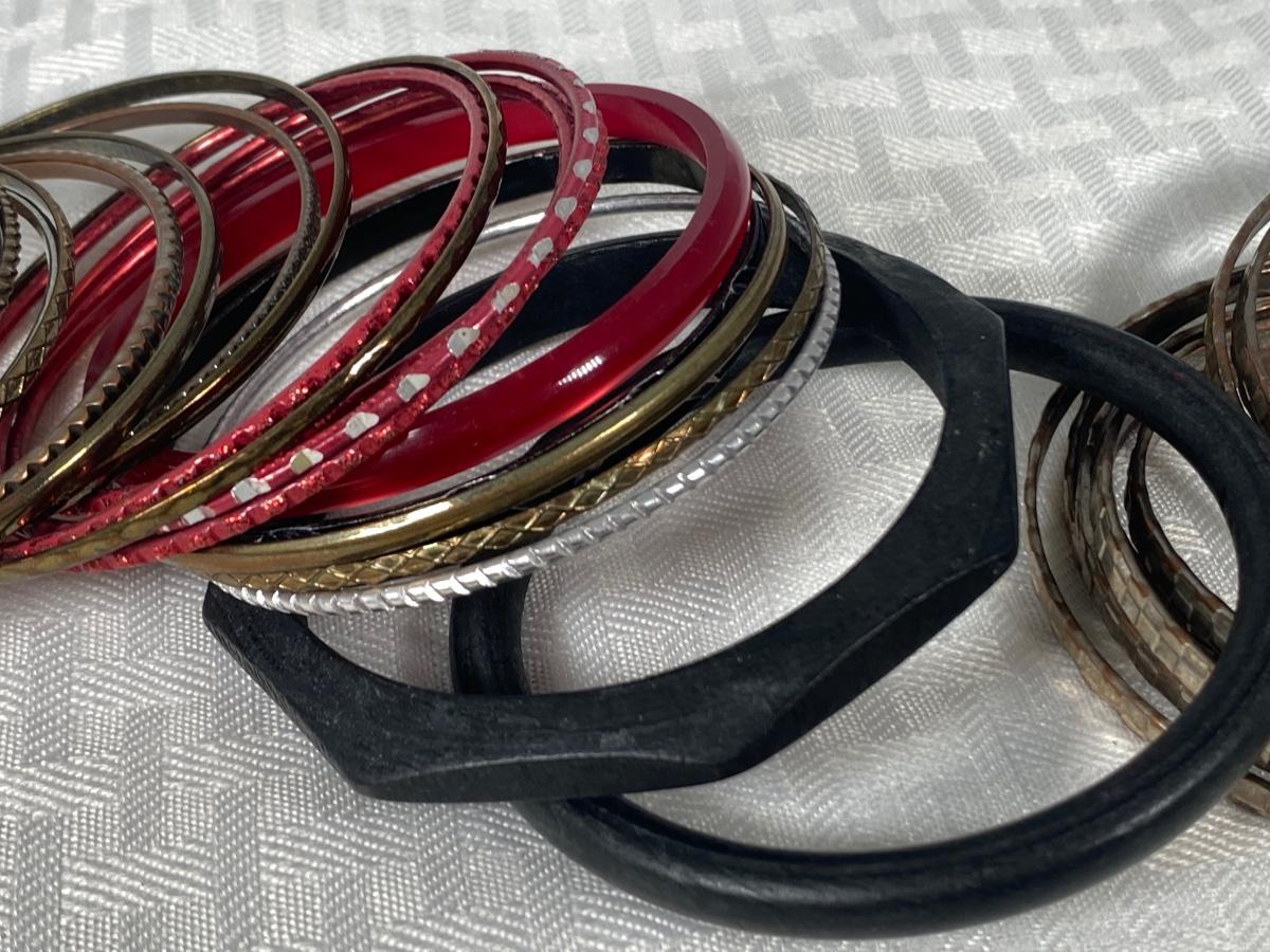 Mixed Lot of Fashion Jewelry Bangle Bracelets. Metal, plastic, and wood bracelets.