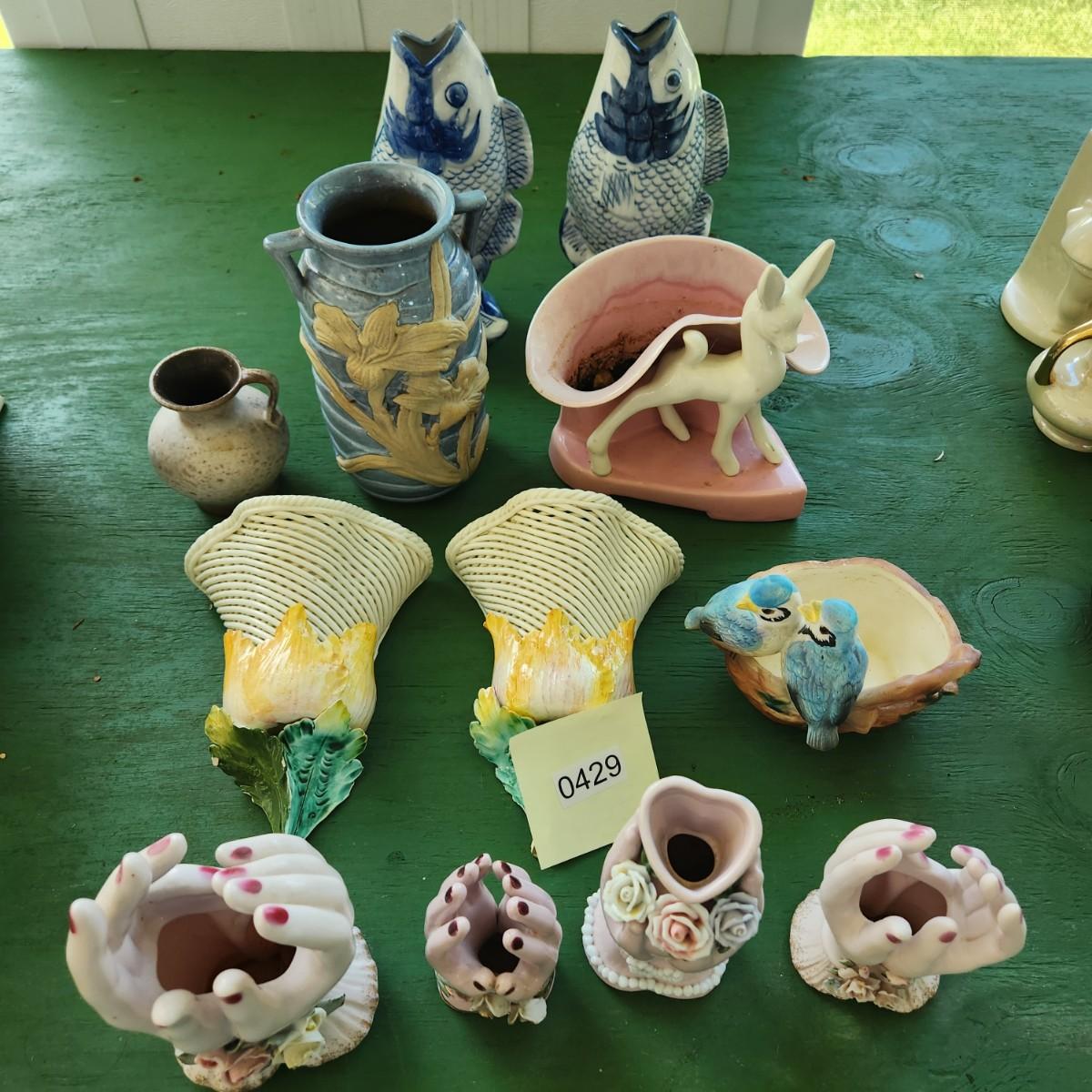 Mixed Lot of Flower Vases Wall Pockets, Fish, Others