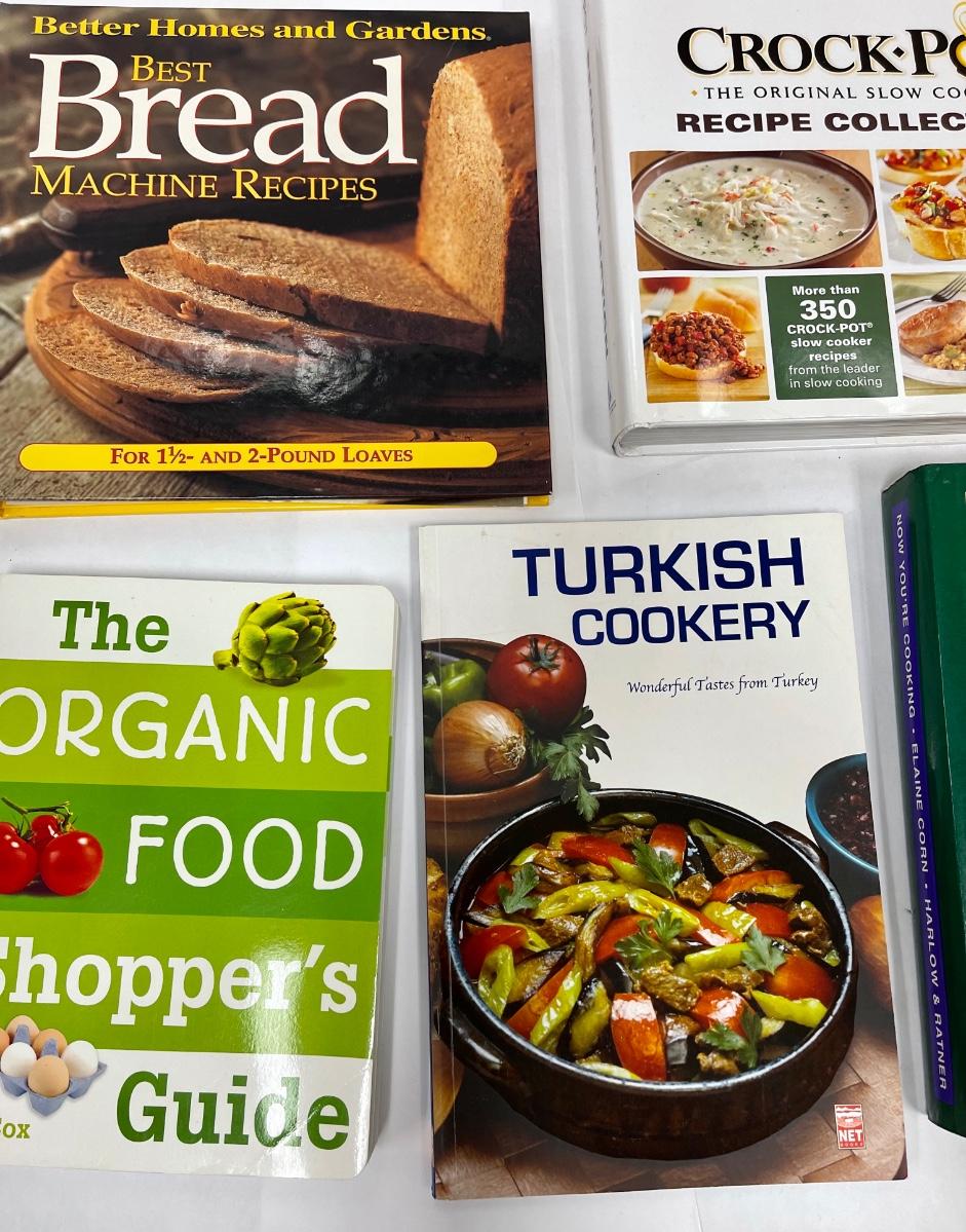 Mixed Lot of Food Guides and Cookbooks. The Organic Food Shopper's Guide is a why you should eat organic foods book not a cookbook. All are in good condition.