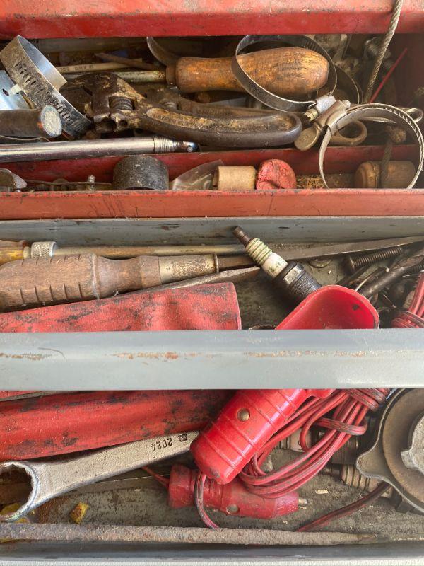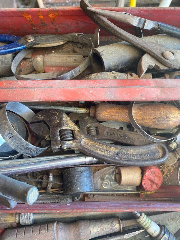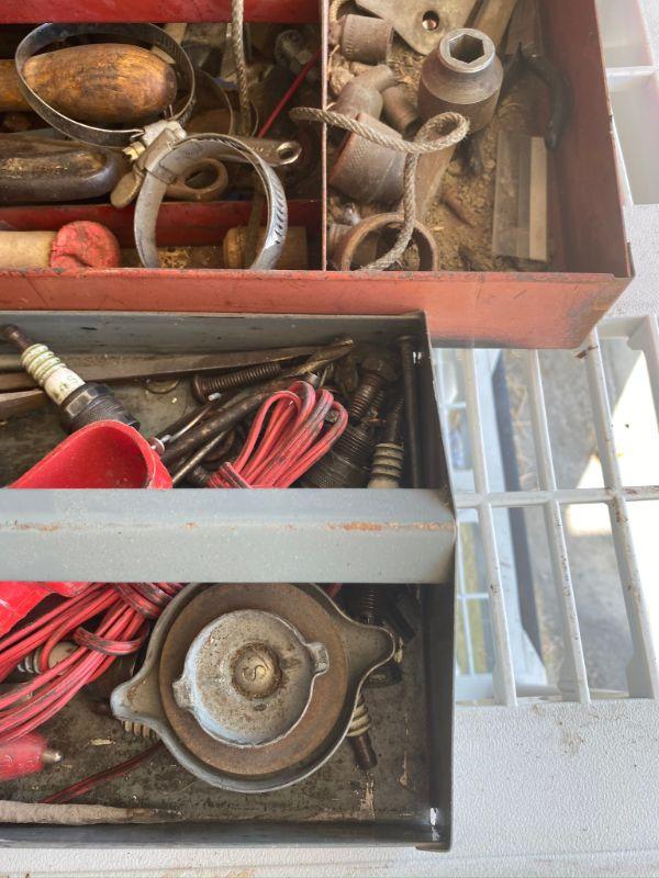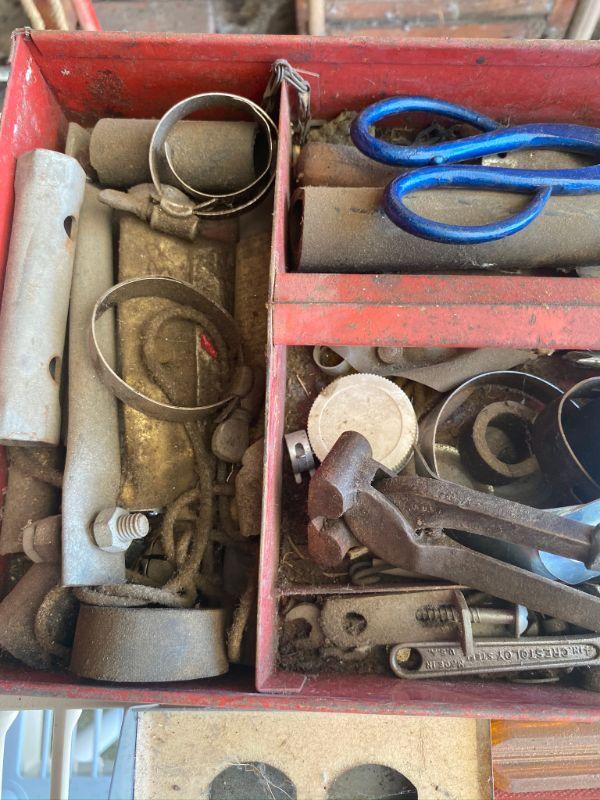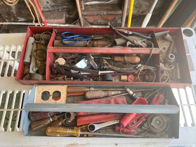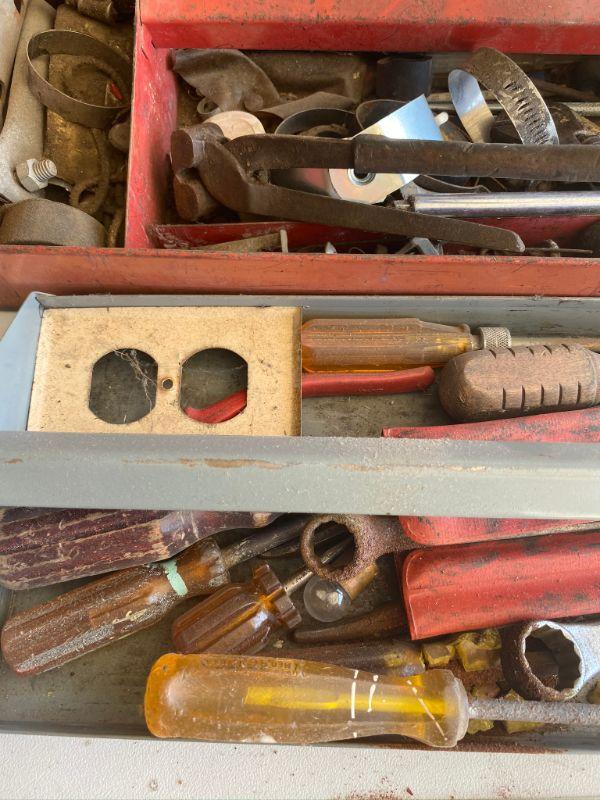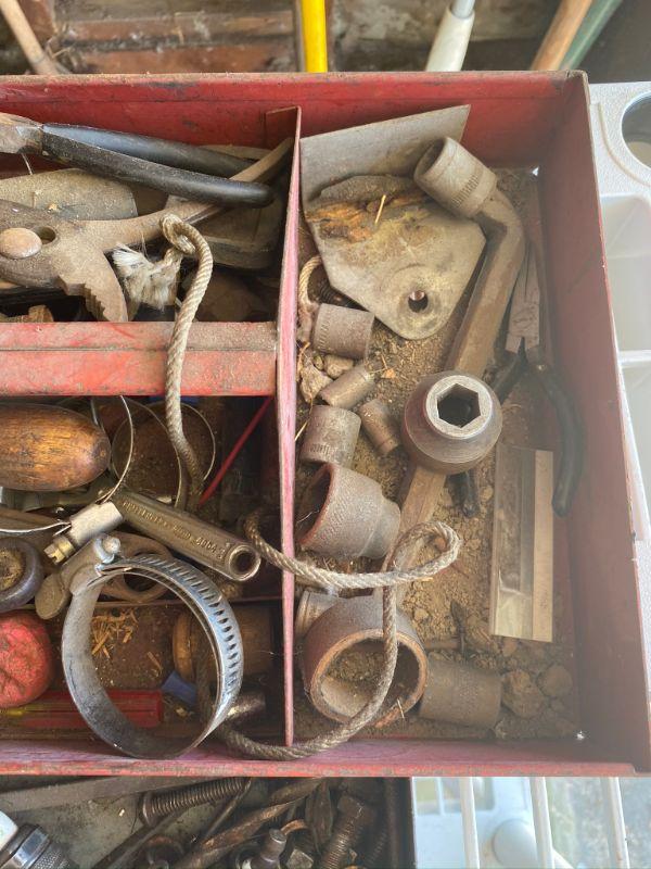 Mixed lot of hand tools and hardware. Included is everything in photos plus the two handled trays the stuff is in.