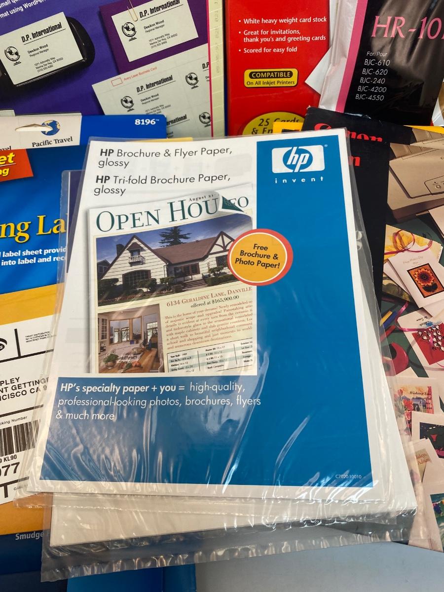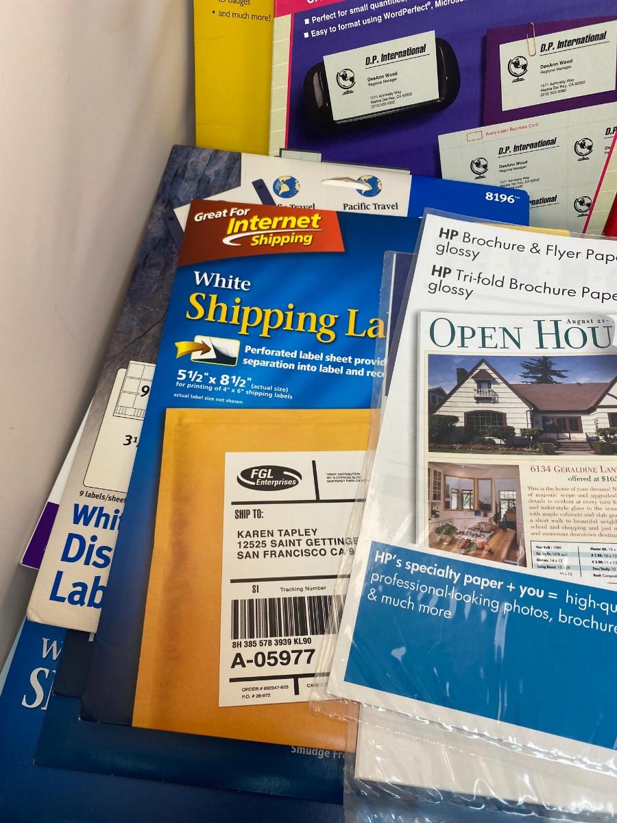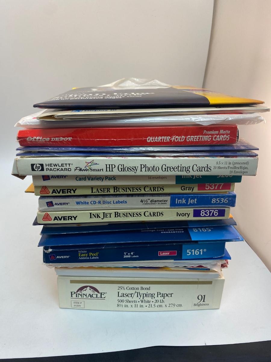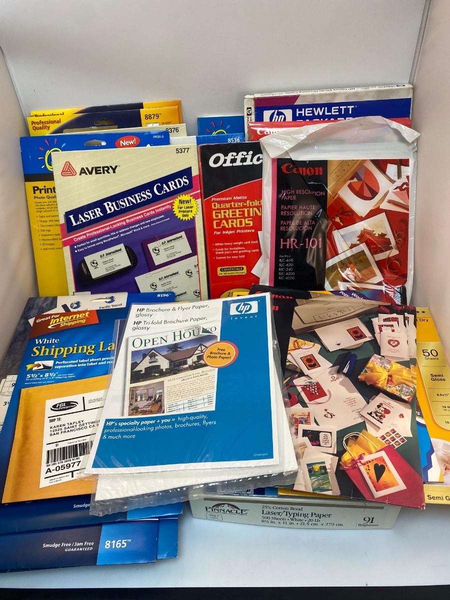 Mixed Lot of Home Printing Photo Paper, Shipping Labels, Business Cards & More. Some open packages. but everything in good condition.