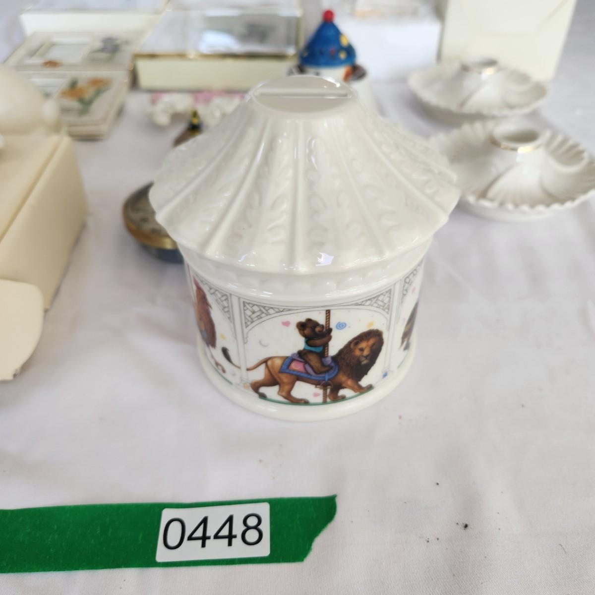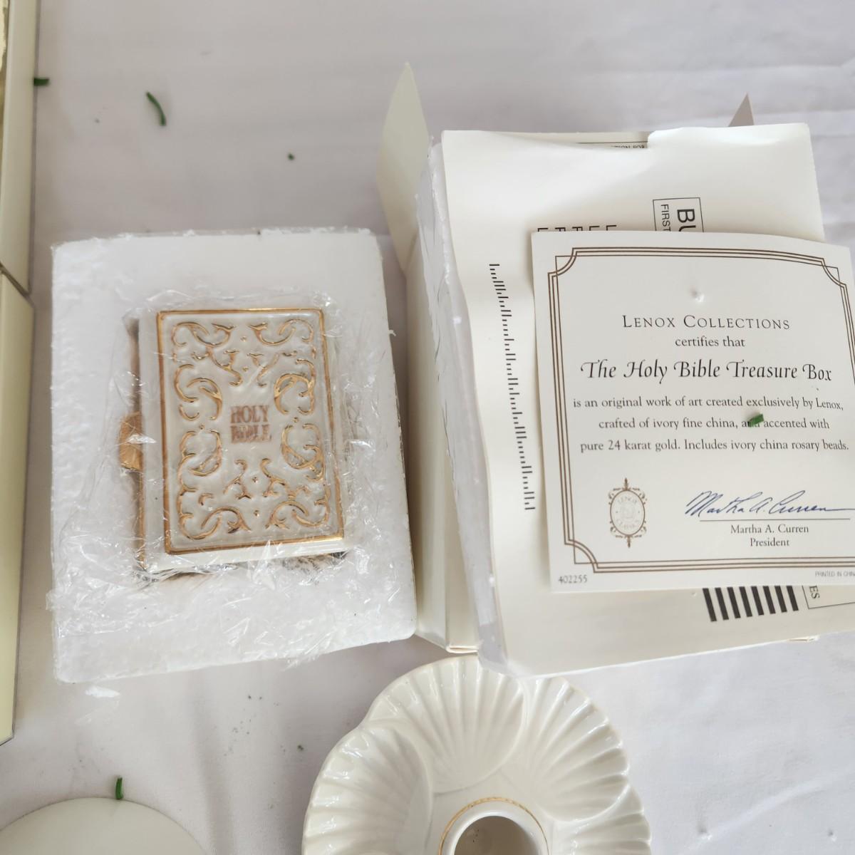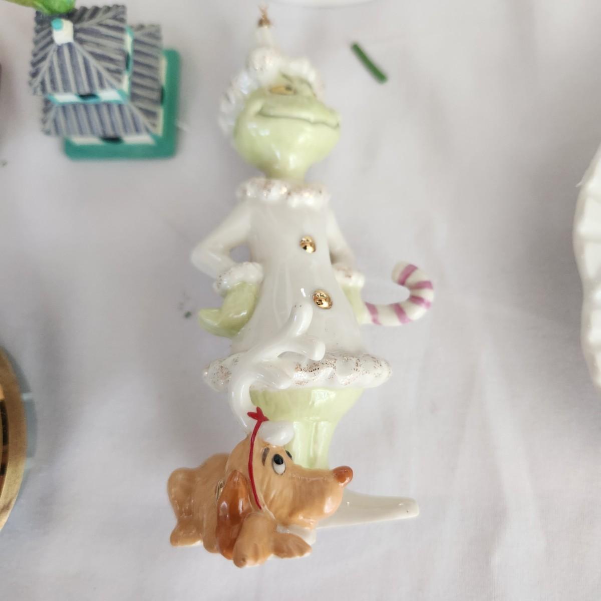 Mixed lot of Lenox , Bible Trinket, Candle holder, Heirloom Bank, Grinch, Clock, Picture Frames