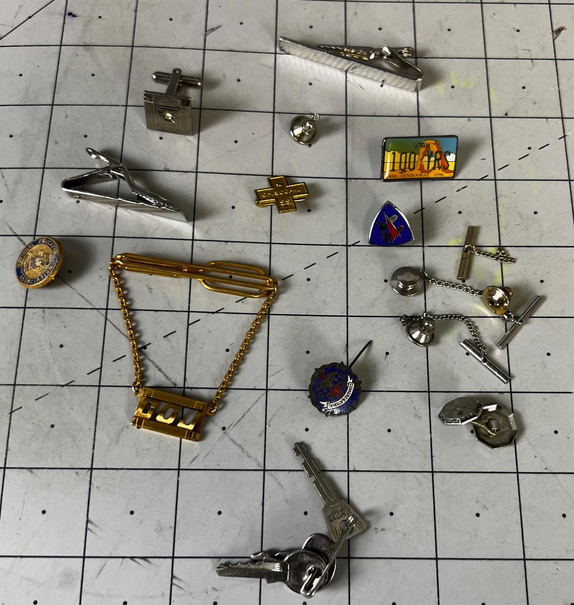 Mixed Lot of Masculine Jewelry Tie Bars and Pins etc.