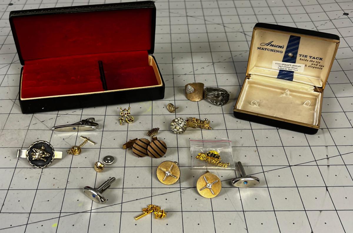 Mixed Lot of Men's Jewelry; Tie Tacks and Cuff Links Mostly