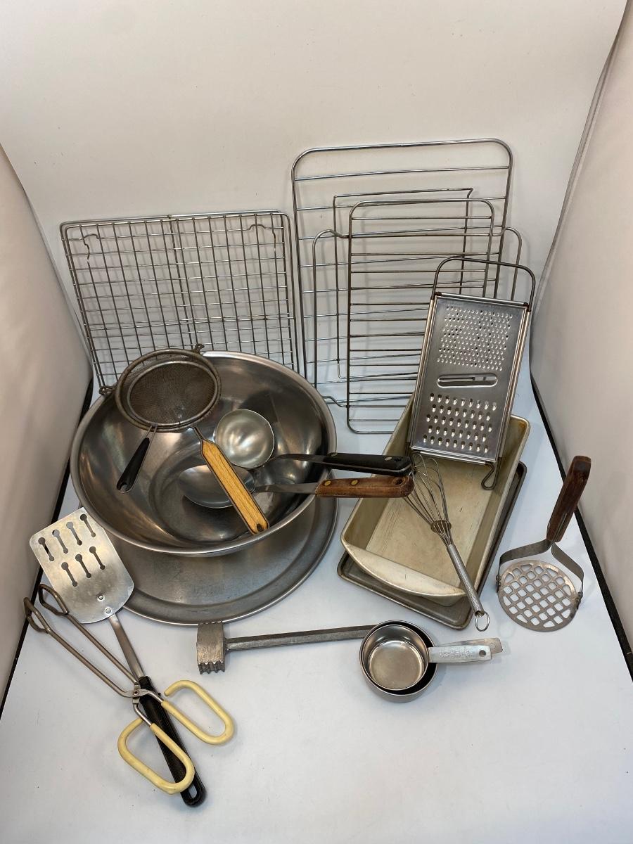 Mixed Lot of Metal Bakeware Kitchen Accessories Pans Racks Utensils