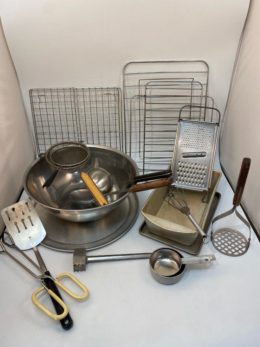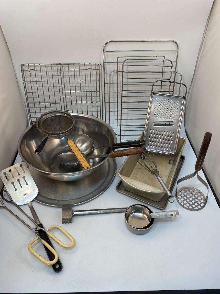 Mixed Lot of Metal Bakeware Kitchen Accessories. Everything is in previously used condition. Includes everything shown.
